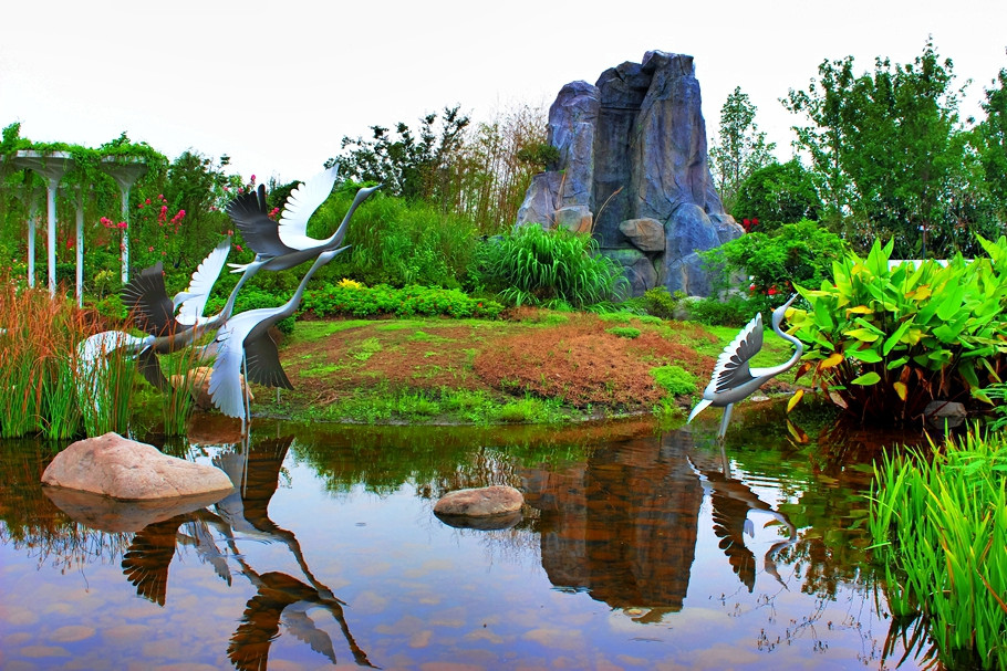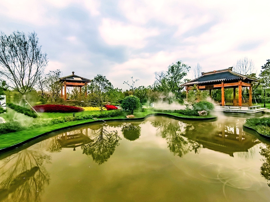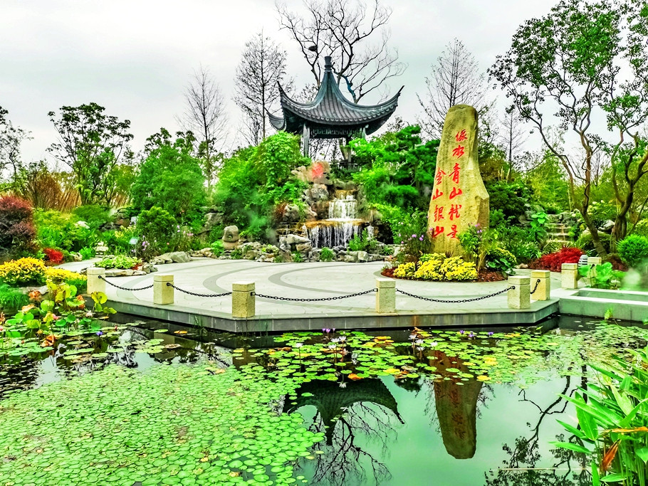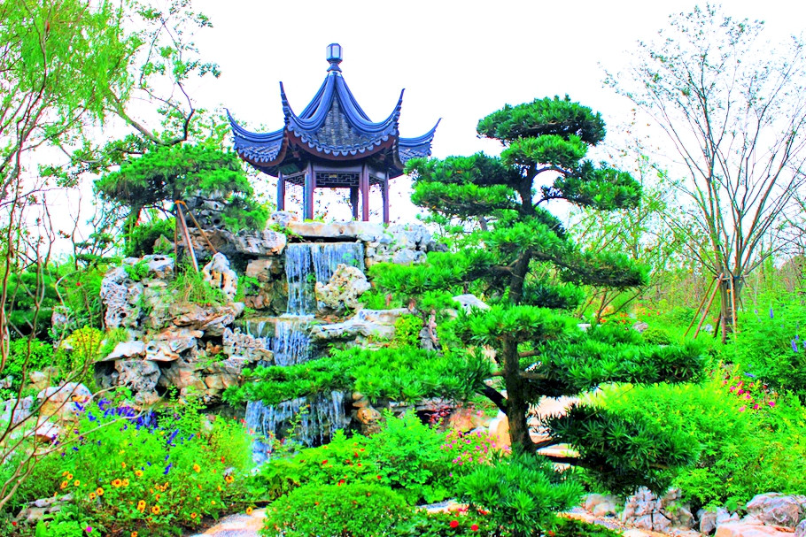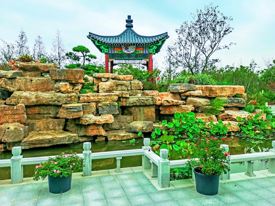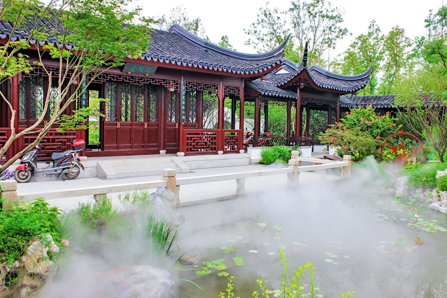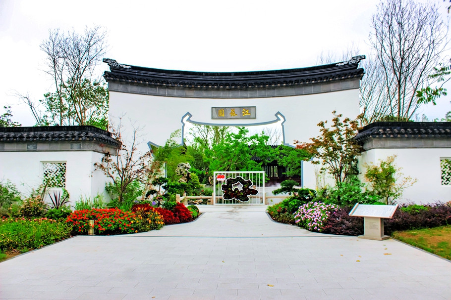 江苏园主题“莳花六趣”,园内主要展示了古典园林的美,小桥流水,亭台楼阁,精致的绿化组合 。
