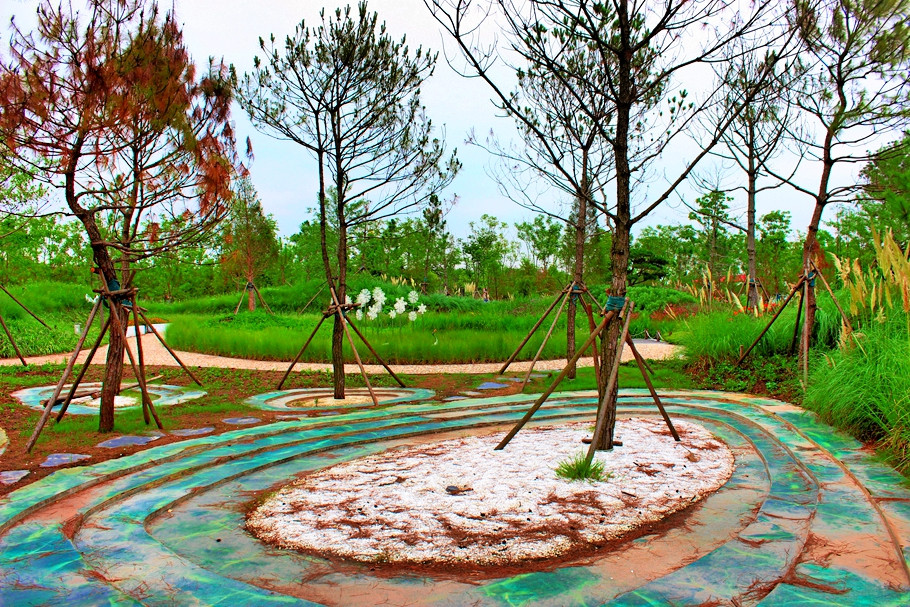 按照游廊、小路、曲桥等顺序,经过姿态丰富的水生植物展区,色彩缤纷自然的林下花带区,创造一个兼顾景观丰富多变与心灵体验的展示园区。