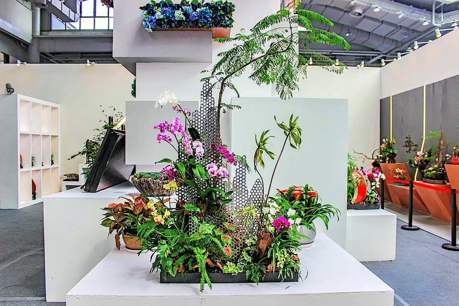 上海展馆里内,有盆花展示区、切花展示区等7个展区错落有致,共展陈600多件展品,为历届花博会上海室内展园展品数量最多的一次。