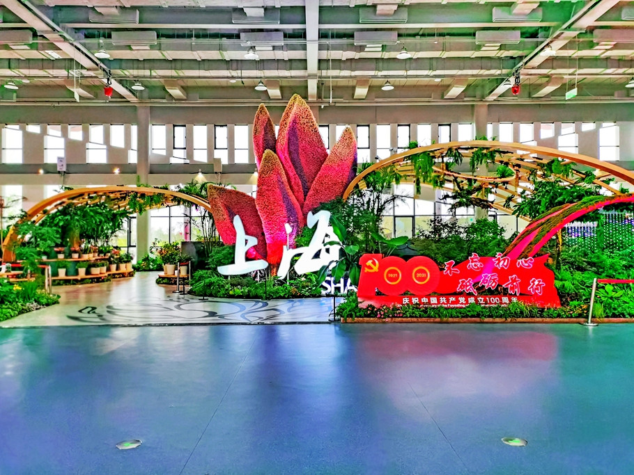 复兴馆是各省区市及中国花卉协会分支机构的室内展区,A1、B1还开着,我们挑选了其中的B1展区逛一逛,因为里面是广受欢迎的上海、江苏、浙江三个室内场馆,作为上海游客一定要去看看上海馆。