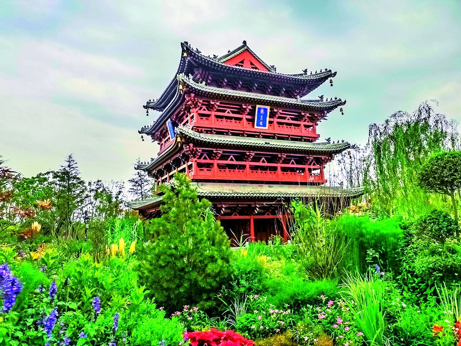 山西园很大手笔,把鹳雀楼搬到了花博会现场,展示唐风晋韵风情。走在石榴、枣、柿子、月季、木槿等山西乡土植物中,楼上铃声叮当,很让人心旷神怡。