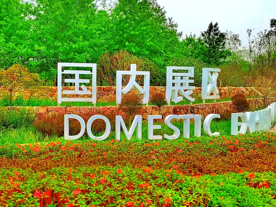 从复兴馆出来,来到国内展区,这里是一片露天展区,各省市的展馆都分布在道路两旁。