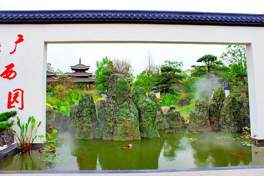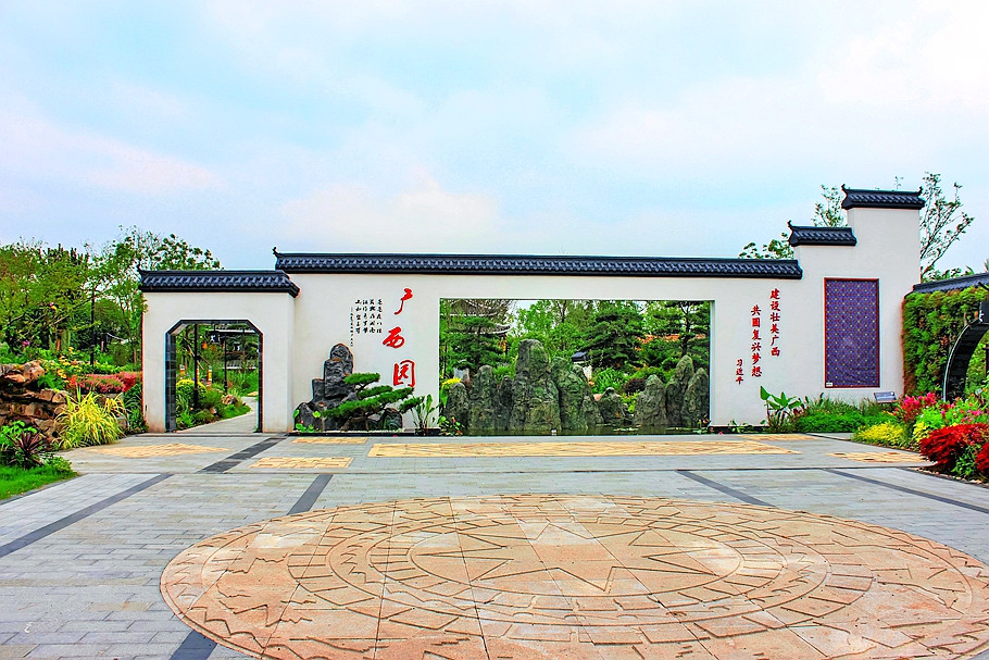 广西园主题“花开南国,秀甲天下”,将具有广西特色的山水元素、民族元素、特色花卉等融入景中,充分展示广西文化和花卉产业建设发展成就。