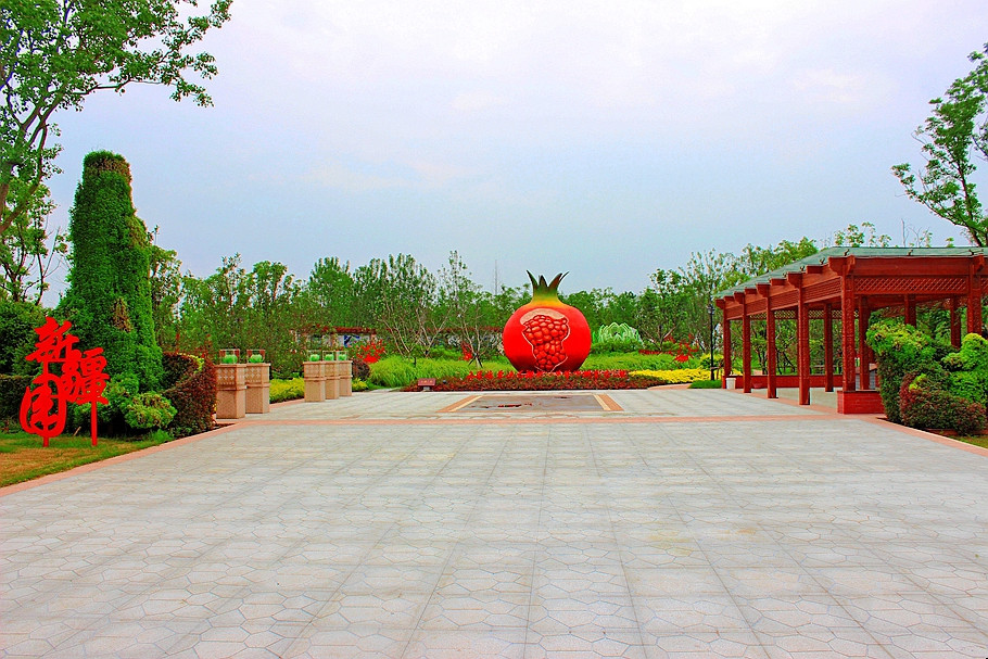 新疆园主题为“花开果香,团结奋进”,以“各民族像石榴籽一样紧紧抱在起”的石榴精神,象征“一带一路的多彩花带串联全园,景观布局涵映一带四园”。