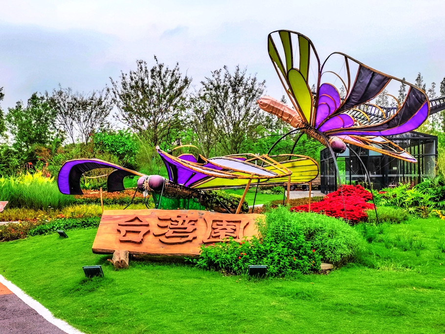 台湾园主题是“花开两岸、同心圆梦”。北区以圆环步径串连多个景观(蝶舞纷飞、观园雅亭、101花塔等)。