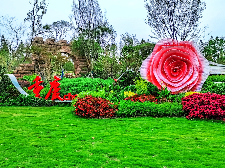 重庆园主题为“山环水绕、花漾重庆”。以植物为主进行打造,用花卉、乔灌草、人工湿地为载体,展示重庆“城在山水间,山水在城中”的城市格局。