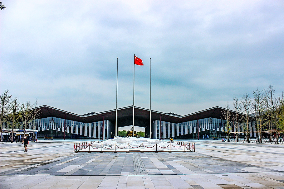 波澜壮阔的复兴馆,以中国古典坡屋顶和柱廊为架构,层叠激荡的坡屋面寓意复兴之路波澜壮阔的伟大历程。