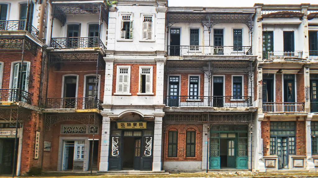 2、民国建筑“街”:这里的建筑很民国(应该是民国吧??),这里有以蓝色为主,有很多的旗袍&用色丰富的“宣传单”,极具特色。拍摄角度可以多变,只要避开建筑周边的杂物,保持水平线就很好看了。因为这里的颜色本来就很丰富,可以在后期把饱和度和对比度调高一些(我喜欢色彩丰富的构图)