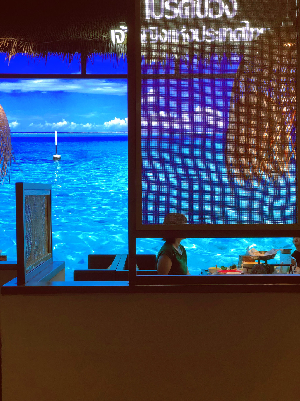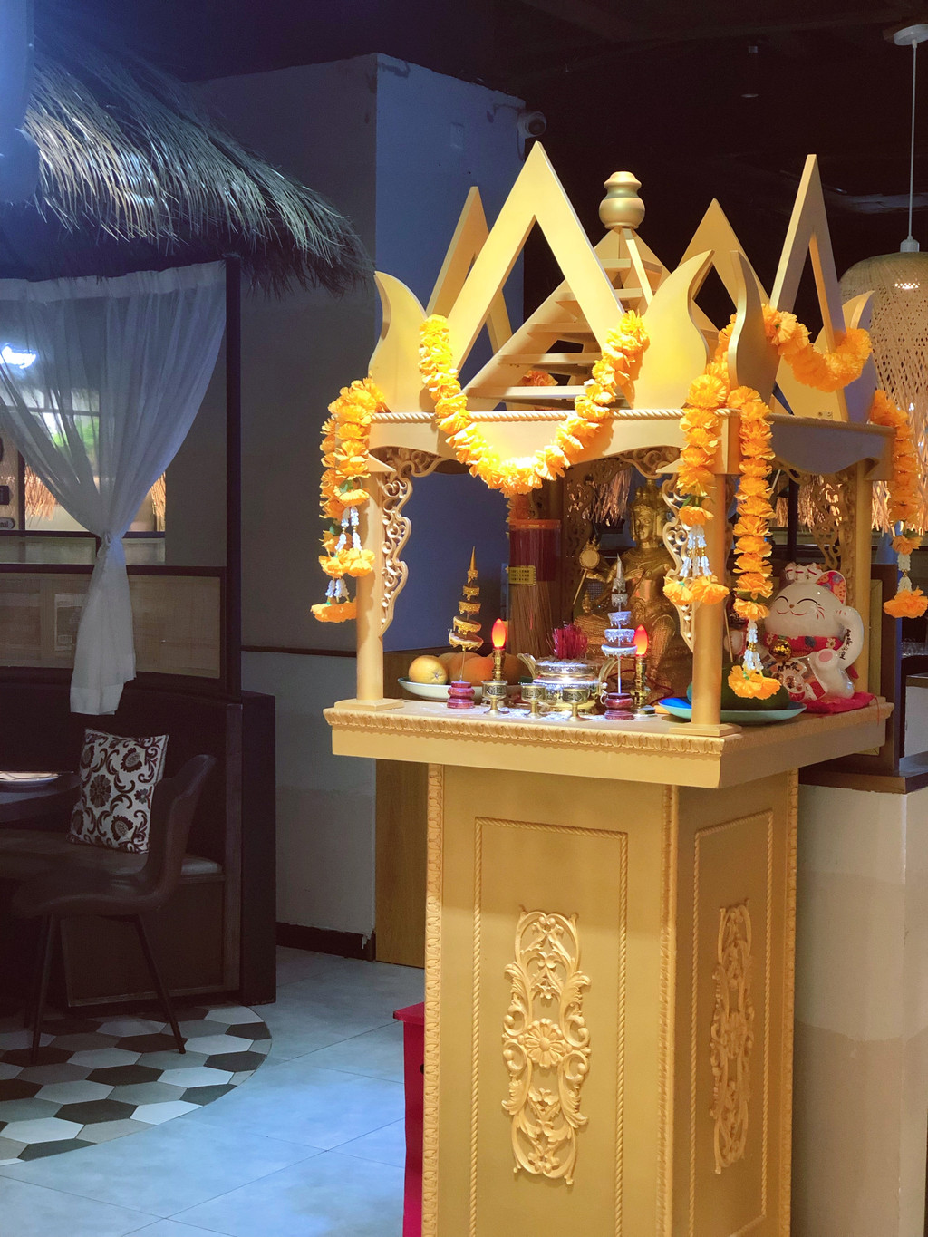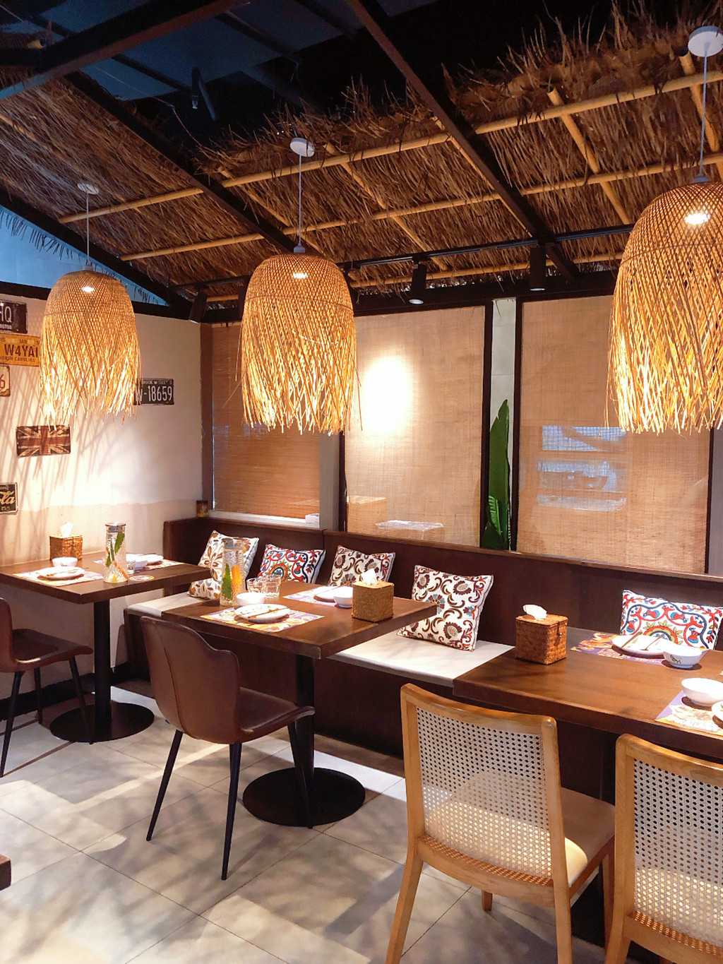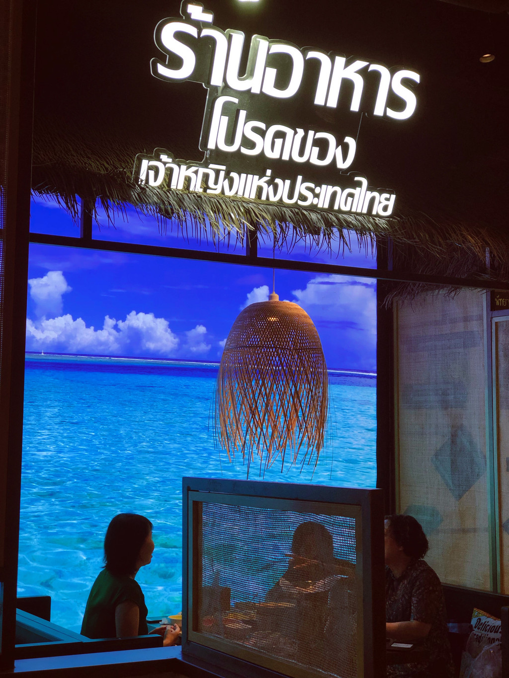 一进餐厅,一幅阳光海滩、碧绿的芭蕉叶、四面佛、挂着帐幔的茅屋等旖旎的泰式风光的画面浮现眼前,耳边回响“萨瓦迪卡”泰语,仿佛已置身于泰国海边餐厅。