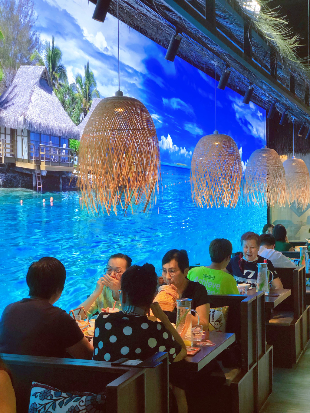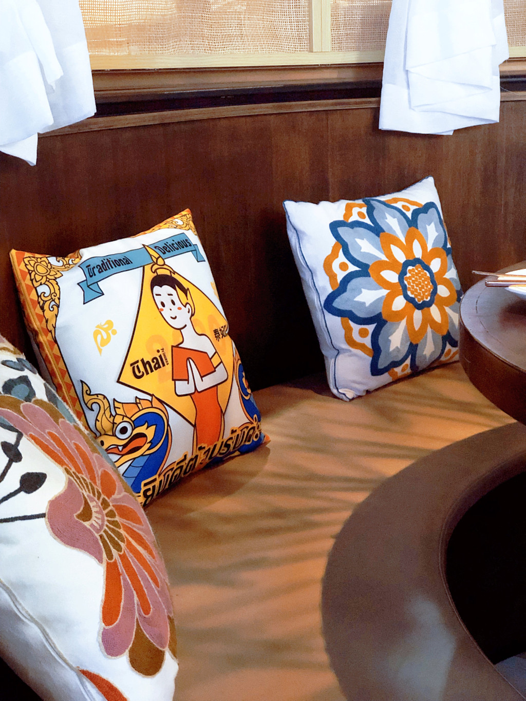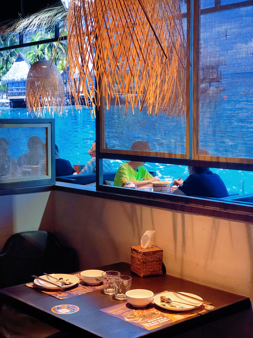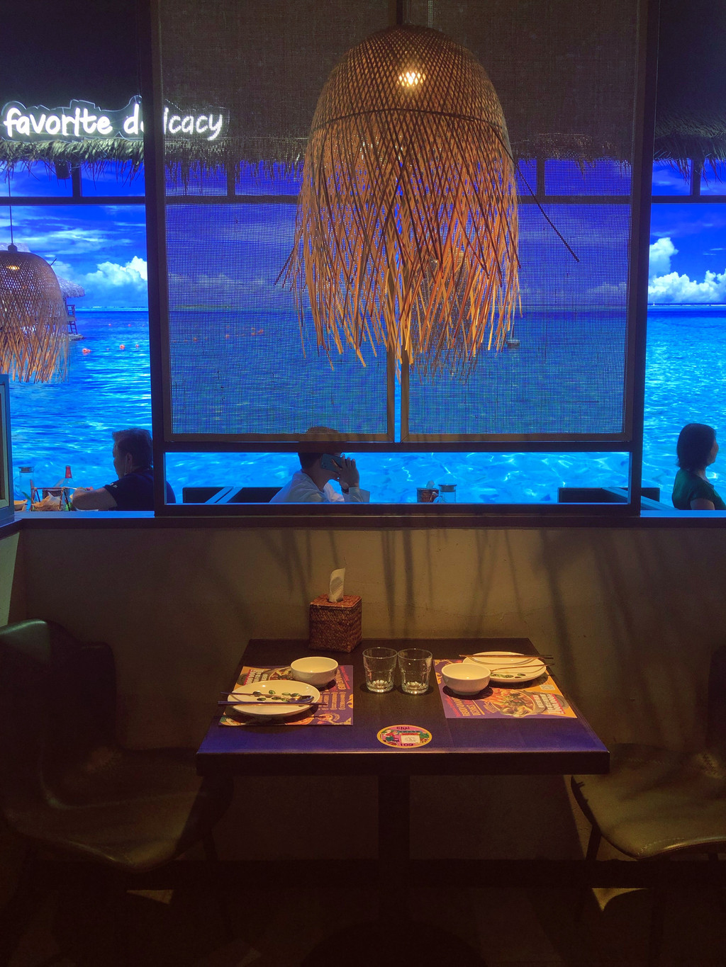 一进餐厅,一幅阳光海滩、碧绿的芭蕉叶、四面佛、挂着帐幔的茅屋等旖旎的泰式风光的画面浮现眼前,耳边回响“萨瓦迪卡”泰语,仿佛已置身于泰国海边餐厅。