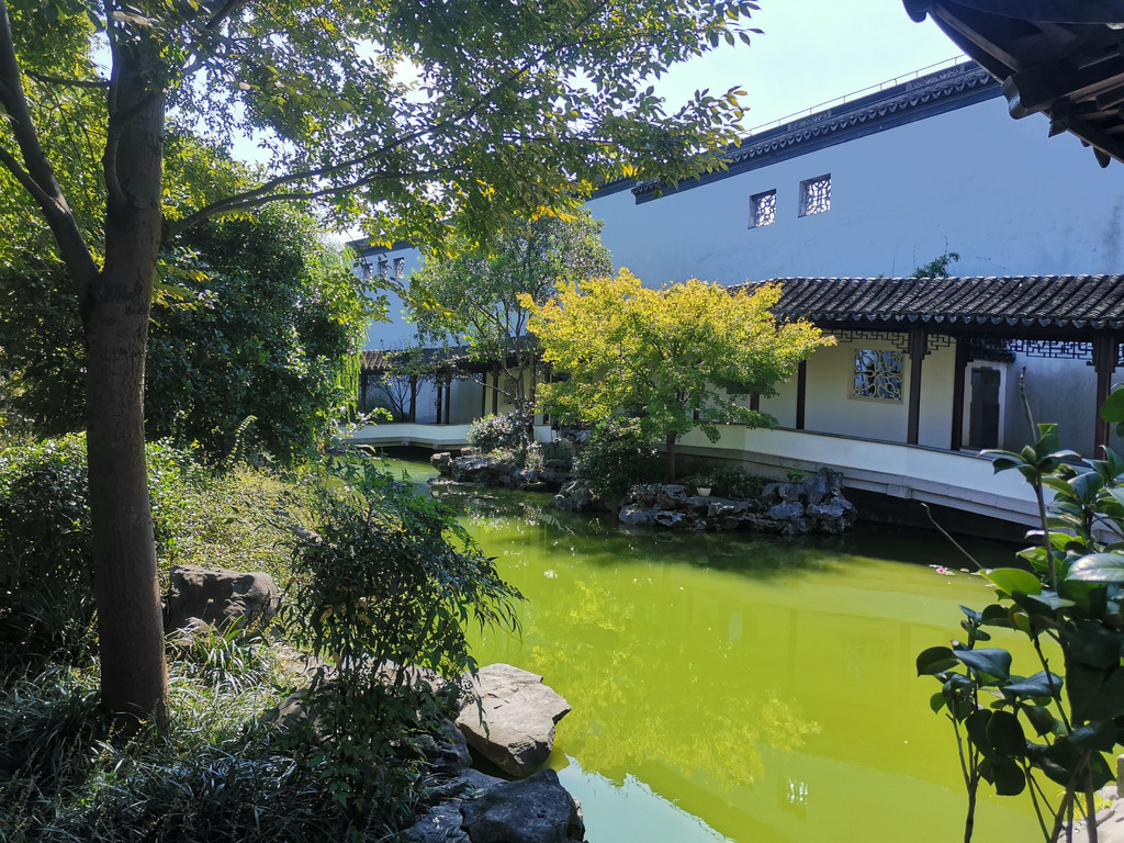 秋霞圃著名的古典园林,绿树成荫,小桥流水,庭院楼阁,古色古香,典型的江南园林