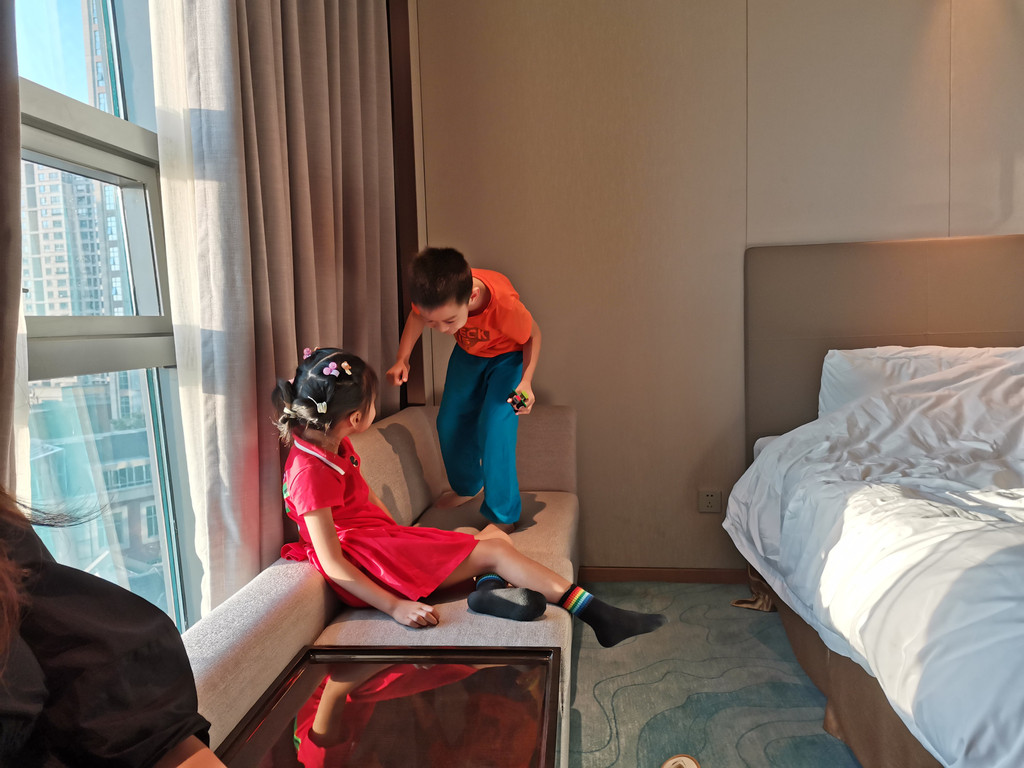 国庆节由于疫情的影响,还是不能离沪,带着娃,陪着家人一起嘉定旅游。4天3夜,入住的是嘉定五星级瑞立汽车城酒店。酒店位置离11号线地铁上海汽车城站10分钟的步行路程。37层的,868间的客房,算比较大的酒店,大堂比较豪华,带室内游泳池,37,36双层自助餐早餐,游泳池和早餐就是国庆节人多,体验效果打八折吧,觉得平时来度假,会更好些。自助早餐应该有的都有了吧,面包,中式点心,面点,蔬菜,色拉,饮料,咖啡,牛奶,豆浆,站的高看得远,37层云端餐厅,一览众山小的感觉,似乎欠缺了什么,就是说不上来!可能菜肴的味道还需进一步提升,炒菜!房间30平方米吧,还算干净,中规中矩吧!
