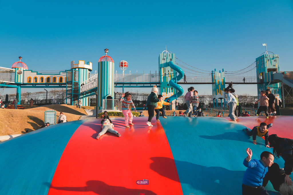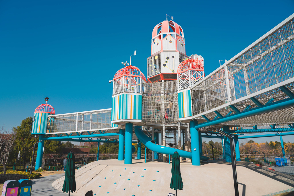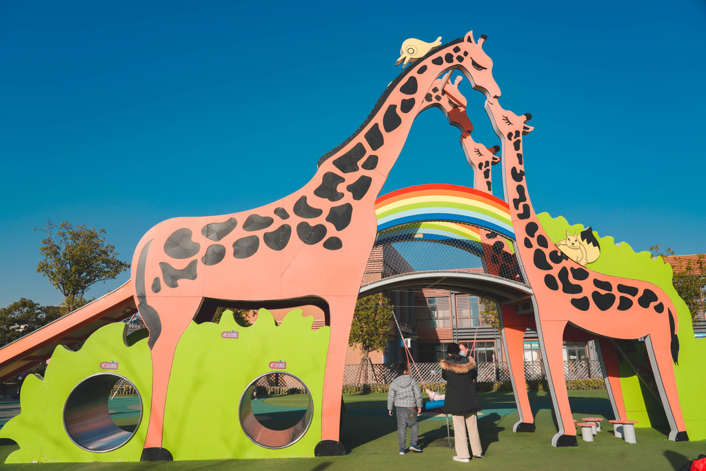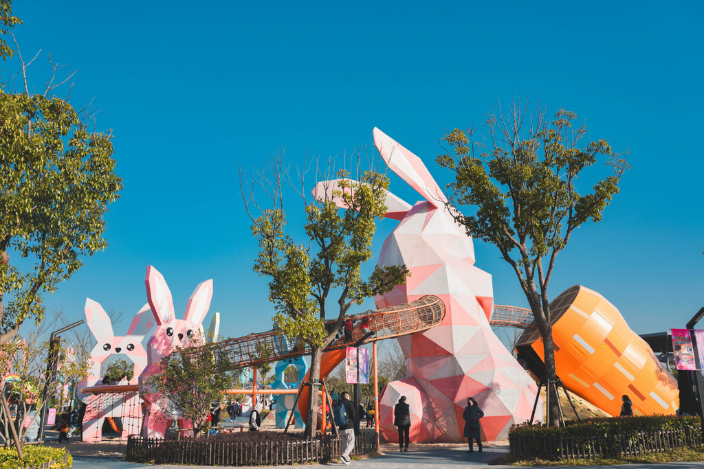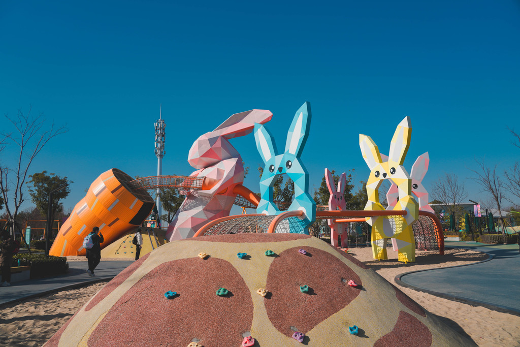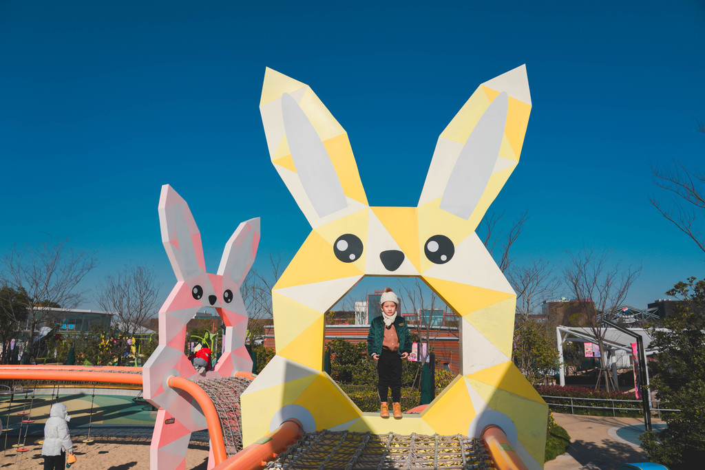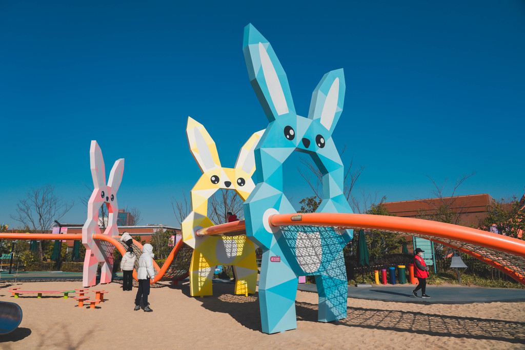 兔宝王国里有各种滑梯和攀爬组合,长颈鹿和马卡龙色系的各种兔子造型最吸睛,它们就像无言的精灵,守护着小朋友们五彩斑斓的梦境。