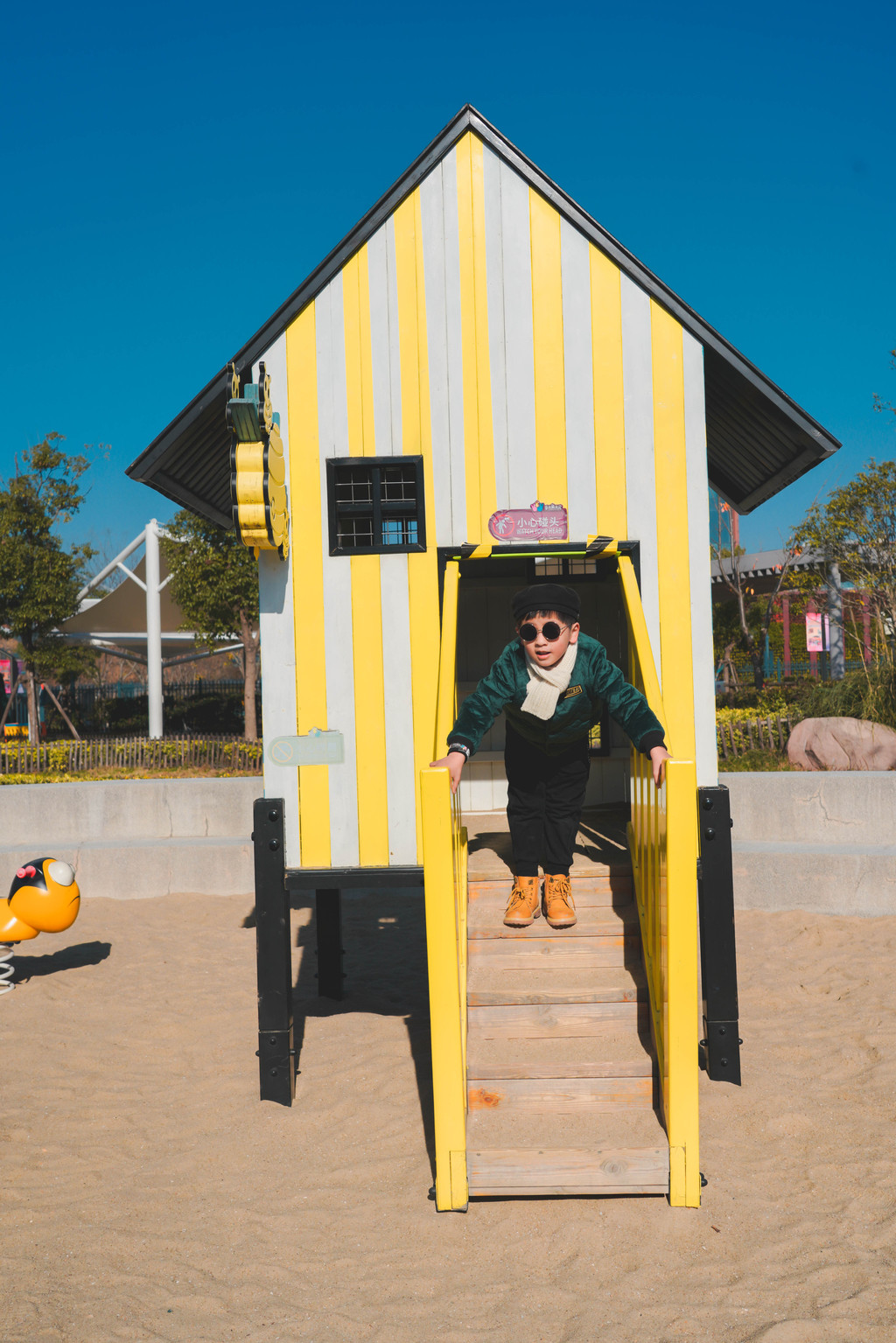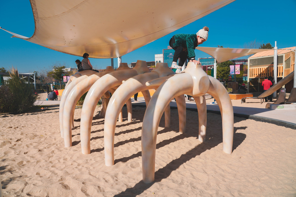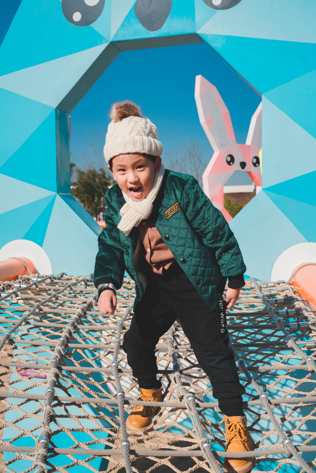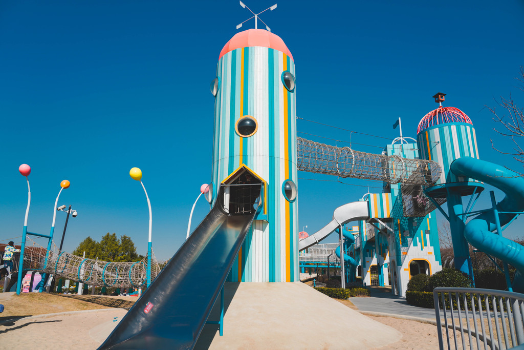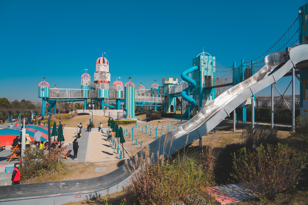 兔宝王国里有各种滑梯和攀爬组合,长颈鹿和马卡龙色系的各种兔子造型最吸睛,它们就像无言的精灵,守护着小朋友们五彩斑斓的梦境。