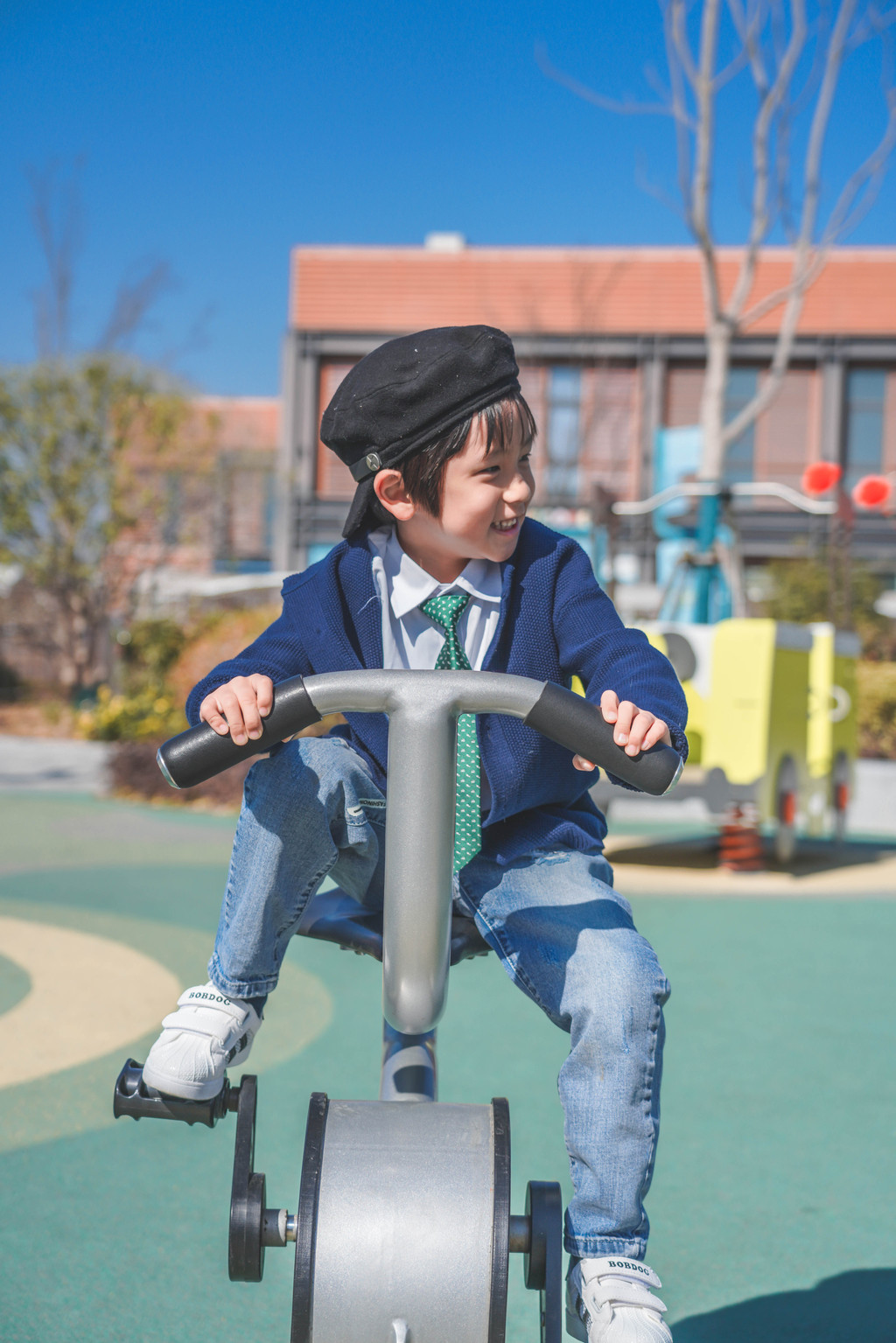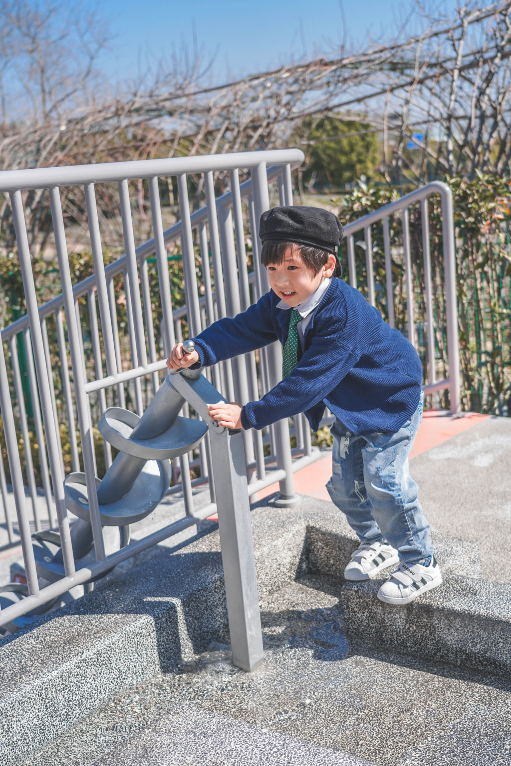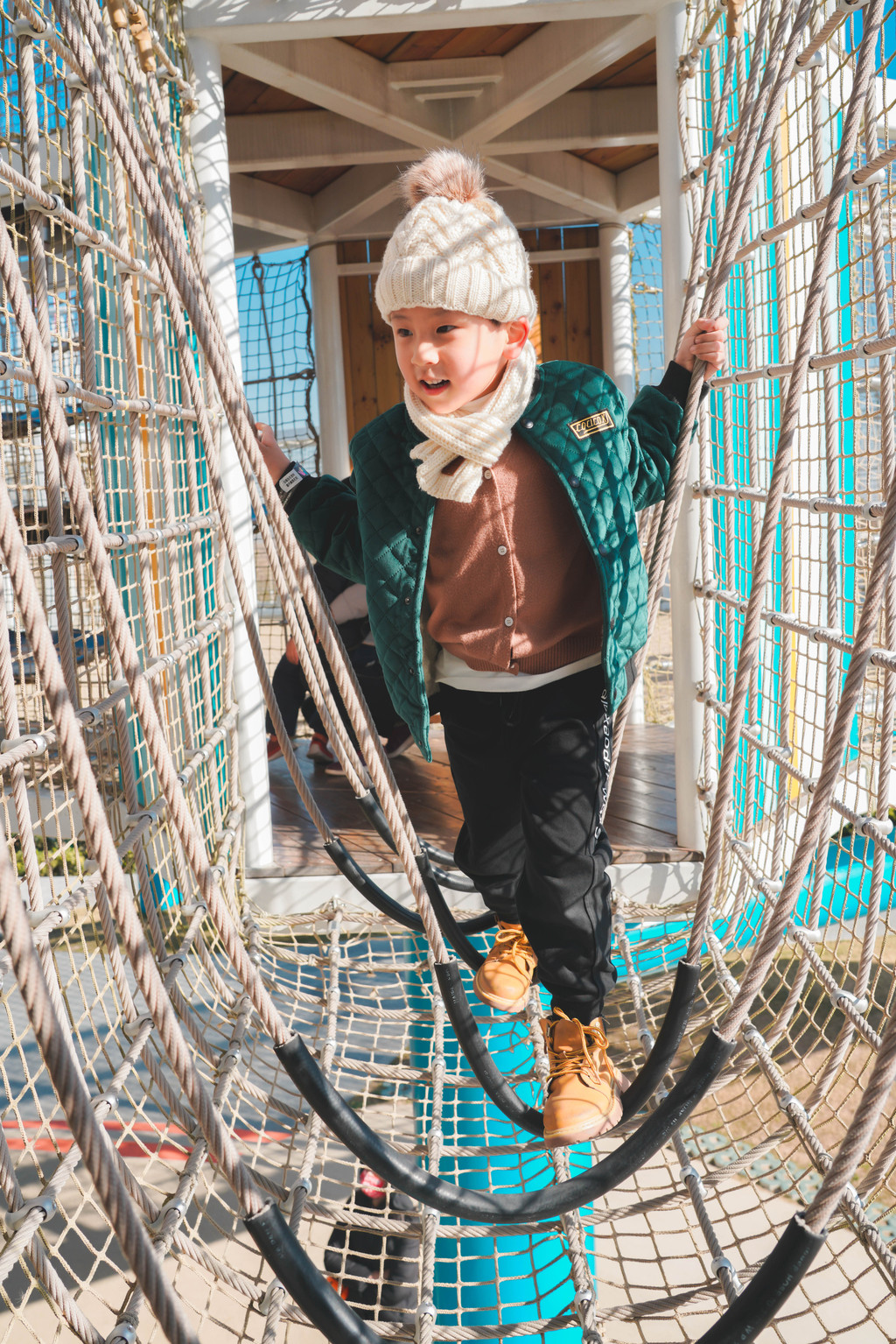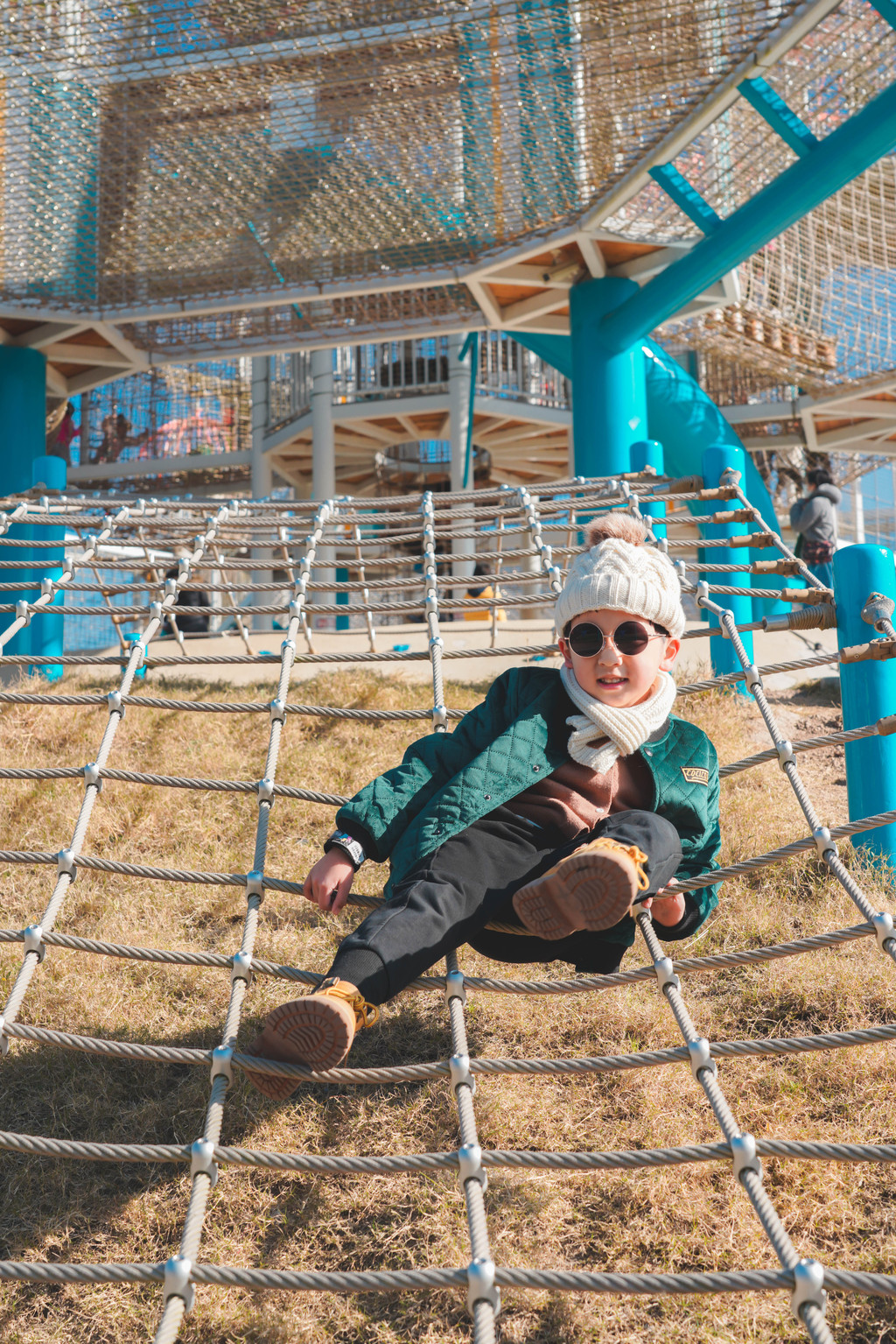 几乎爬一段就要停下来等我一下,从高塔蜿蜒而下的滑滑梯元宝是开心的一滑到底,而第一次玩的我则发出了刺耳的尖叫声……