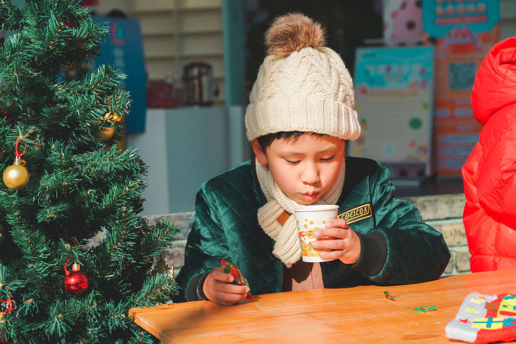 兔宝王国的游客中心也应季推出了很多活动,比如可以体验手工DIY做一顶创意圣诞帽,这也是当天元宝的最爱之一。