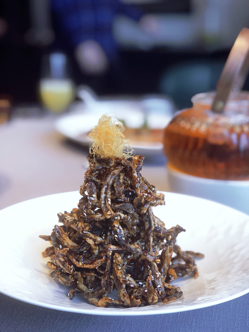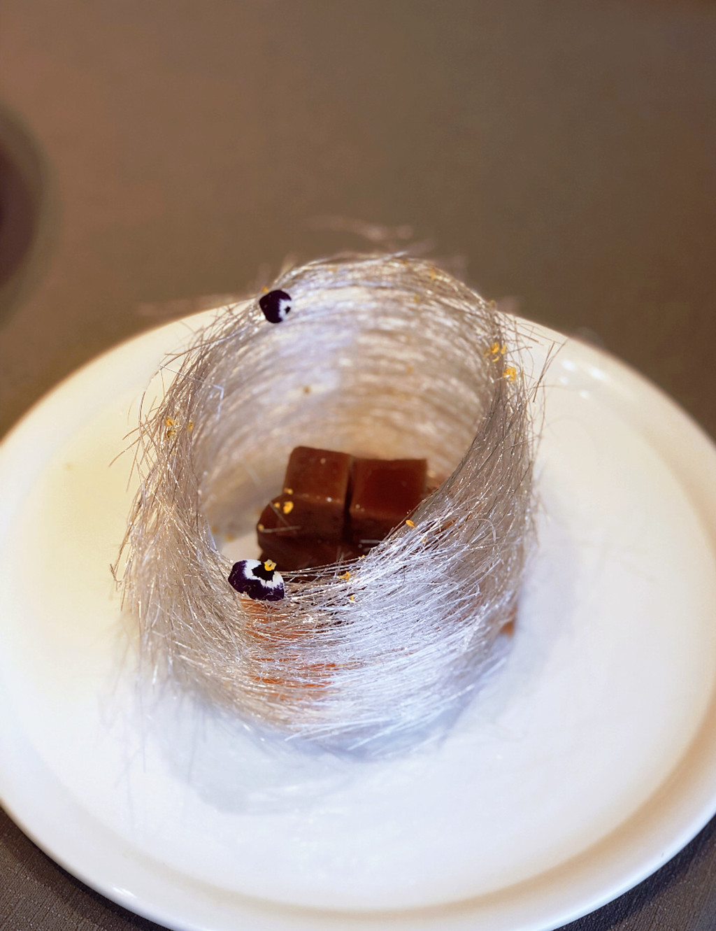 #桂花拉丝糖藕#被糖丝筑起巢窝,包裹着晶莹剔透的粉红藕,筷子碰到就能提前感受到入口的酥糯,还没凑近,已经芳香馥郁得令鼻尖都颤栗,仿佛连空气都变甜,黏而不烂,还带点嚼劲。