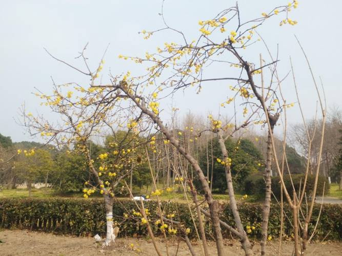 世纪花园的腊梅确实在开放,但因为大多数树木都已经光秃秃的了,看上去还是比较萧瑟。