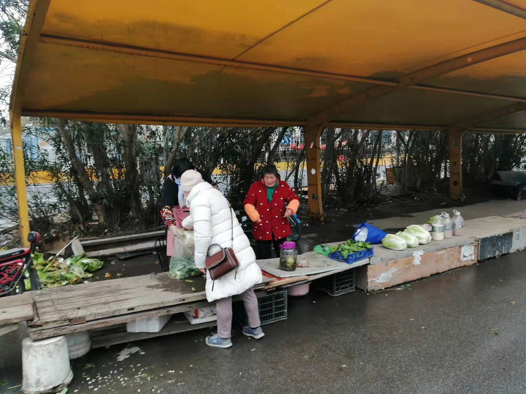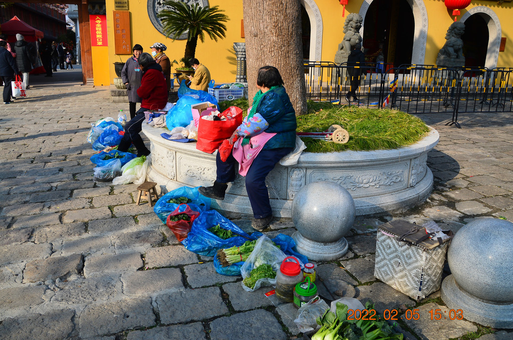在寺庙门口,当地农民摆摊卖自家种的蔬菜。