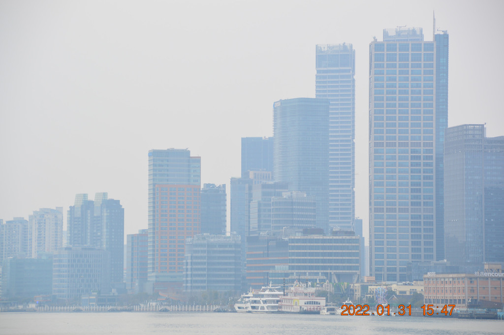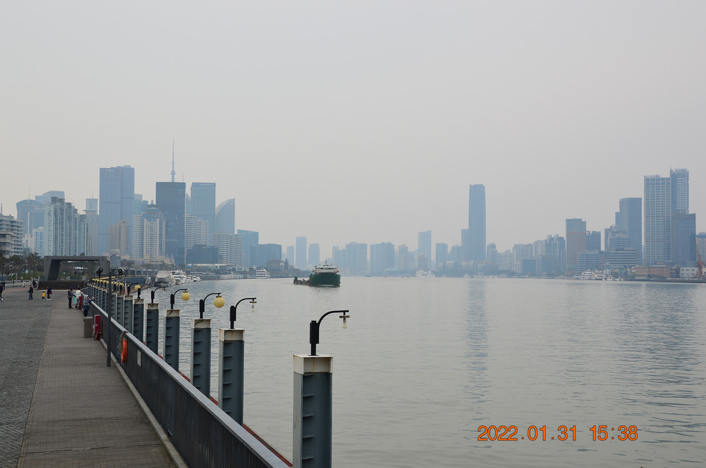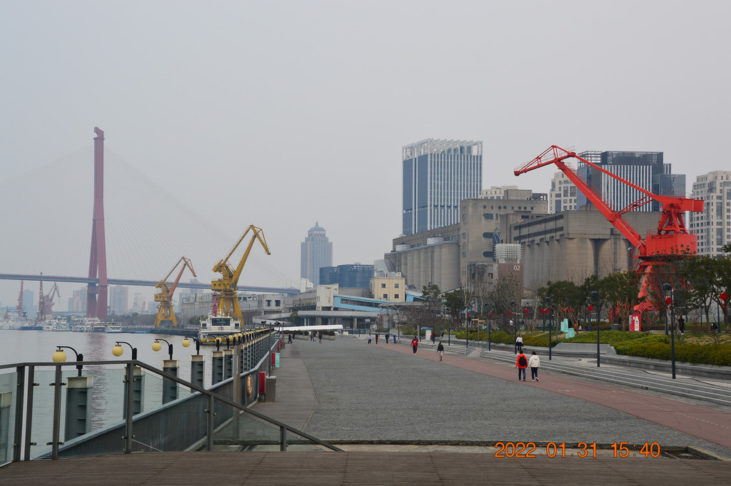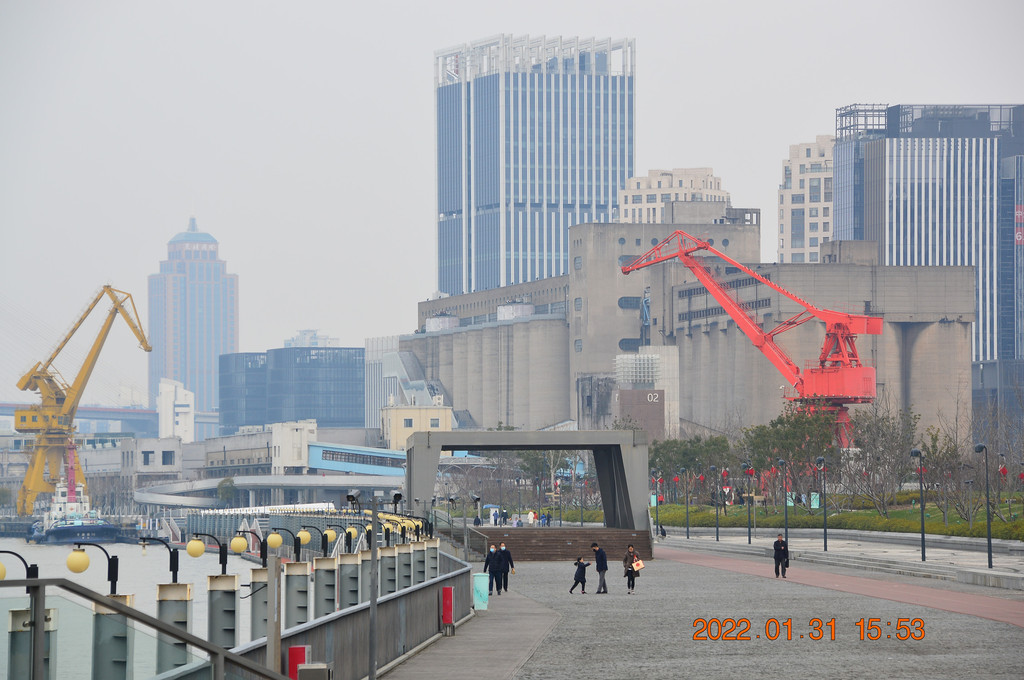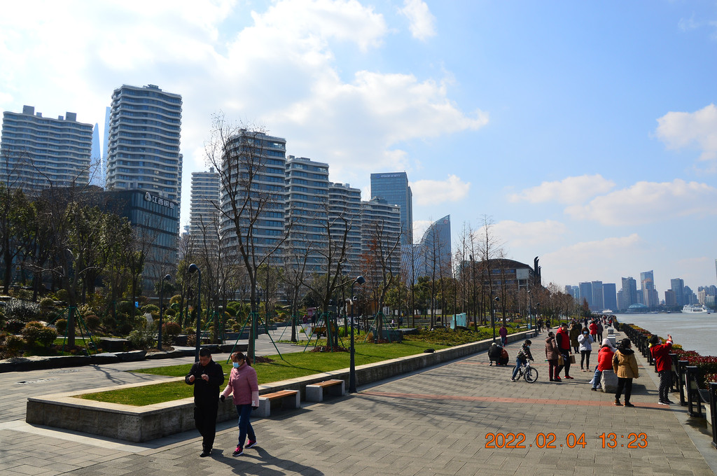 大年初四是上海今年过年第一次晴好的天气。我们驾车到浦东东方路的黄浦江边散步。
