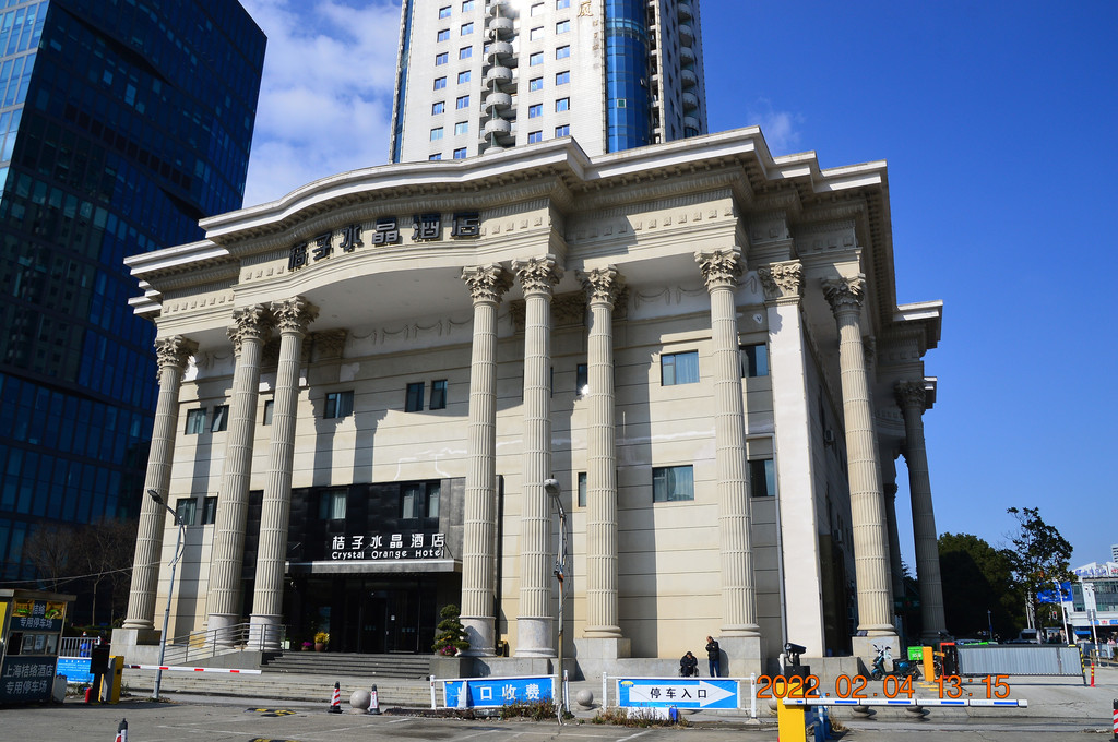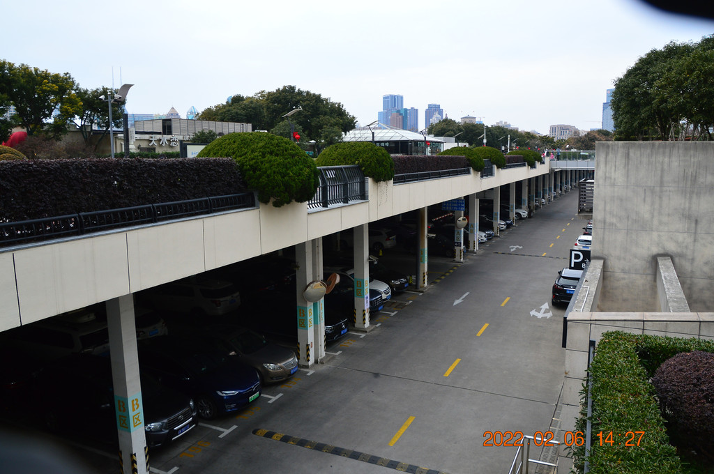 桔子水晶酒店东方明珠店前有很大一块空地是停车场,收费10元/小时。由此,步行至江滨只有百余米。