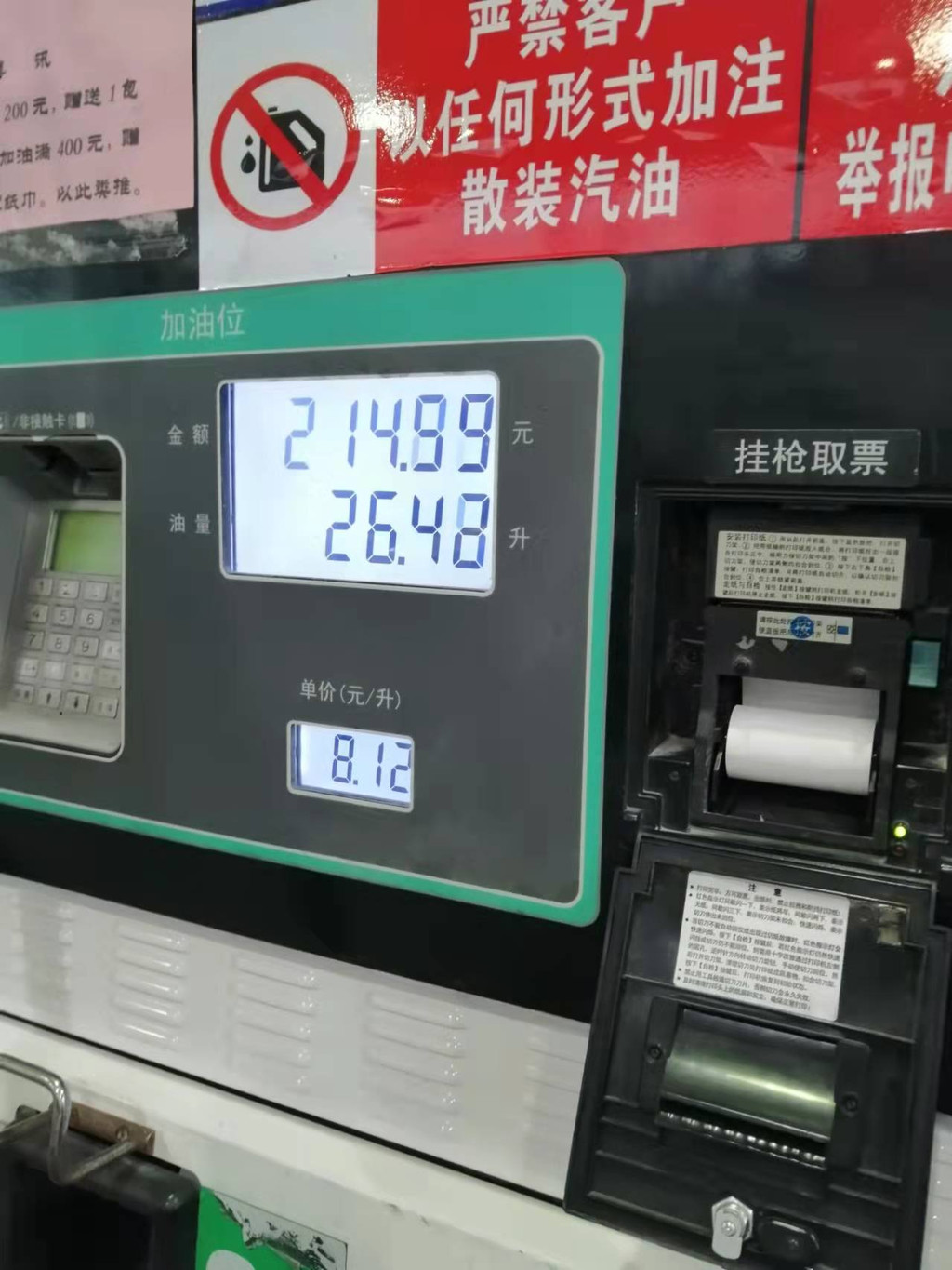 在中石化浦东羽山路加油站加95号油350元,8.12元/升。