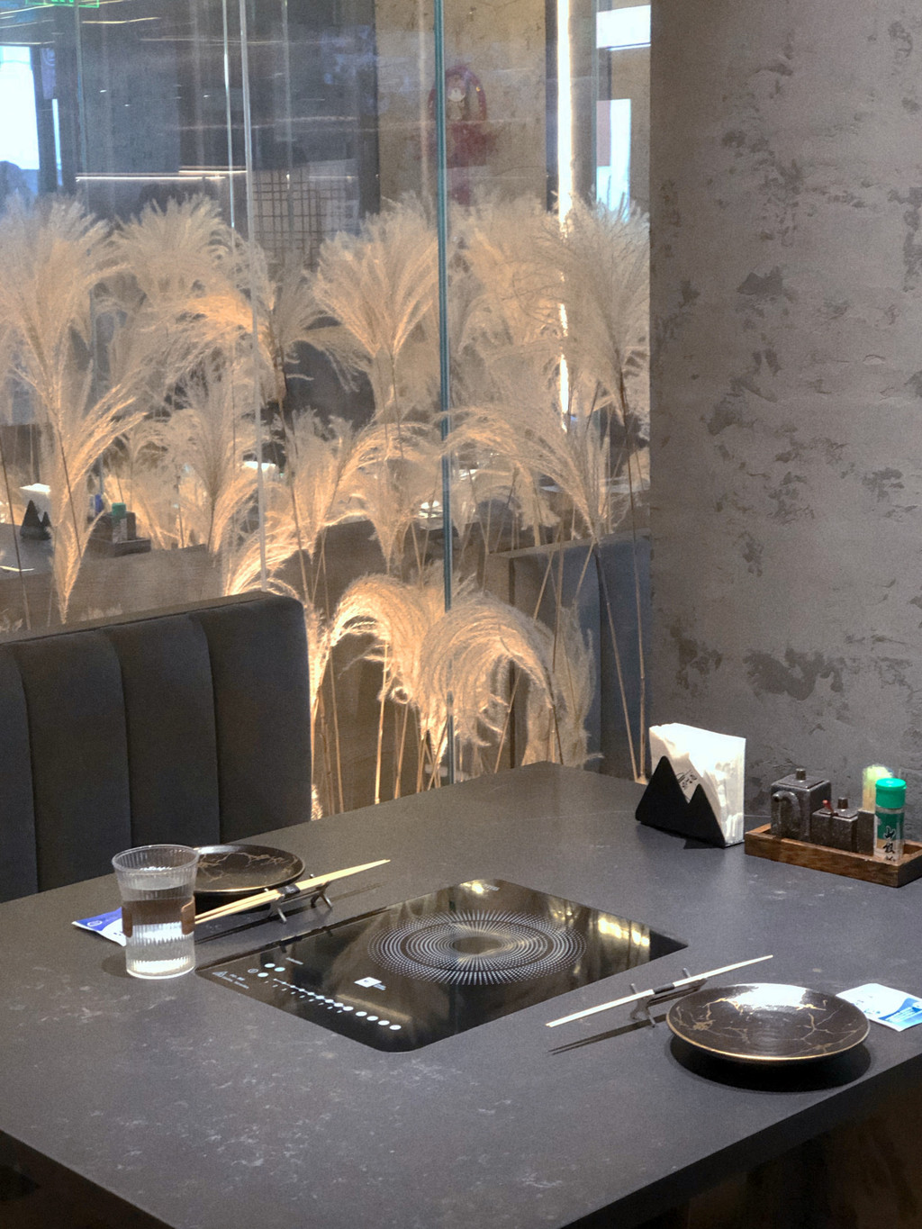 餐厅门口:无山水似有山水之枯山水禅意发挥到极致。餐厅内:启用全透明玻璃+淡黄色麦穗作为阻隔断,充斥着时尚、优雅、大气,整个布局淡雅精致的格调,敲适合拍照,环境和美食都随便出片。