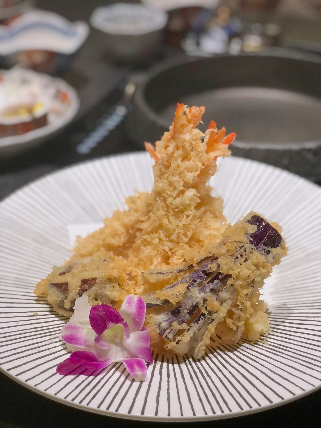 #明虾天妇罗#外衣好似金色蚕丝,口感轻盈且脆,丝毫没有油腻感,而馅料的蔬菜和海鲜保留了原始的新鲜口感,再蘸上带白萝卜丝的酱汁,滋味又更上一层。