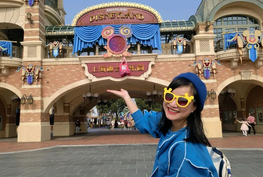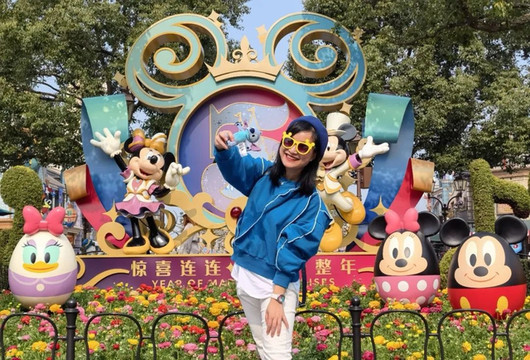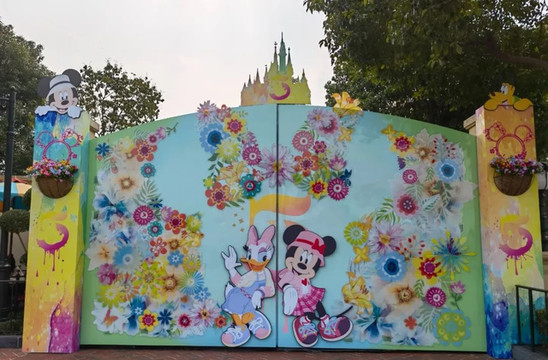 穿过以米妮和黛丝为主角的网红拍照墙,