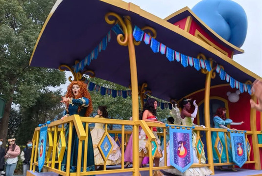 说到这里,也有一个绝对不能错过的点。就算你花车巡游看了再多次,3月也一定要重新看一遍!因为有迪士尼各位公主出现在花车巡游中哎!