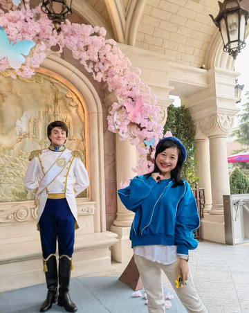 整个3月,还有迪士尼公主和王子们会随机出现在奇幻童话城堡的露台上或是迎宾阁。喵妈就偶遇了我的王子,虽然她们说他长得有点像憨豆……但!我觉得!这一定是妒忌我!哈哈哈~
