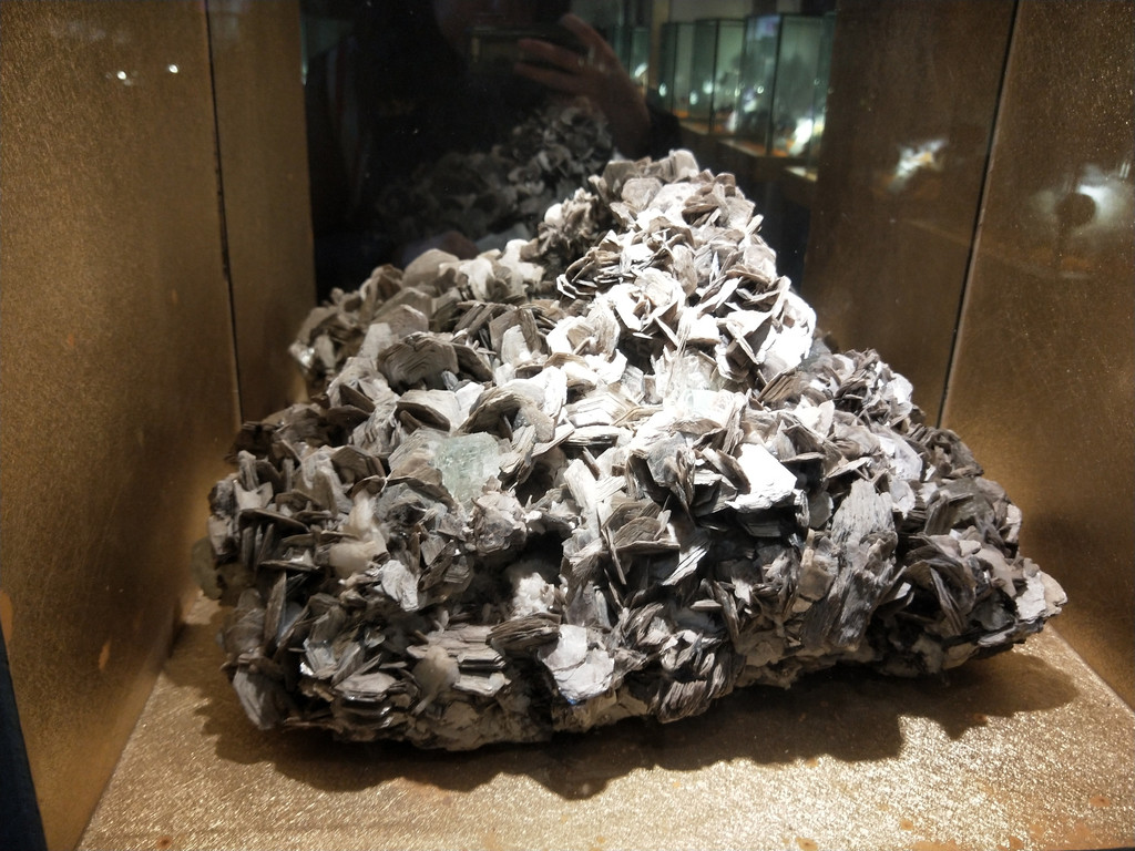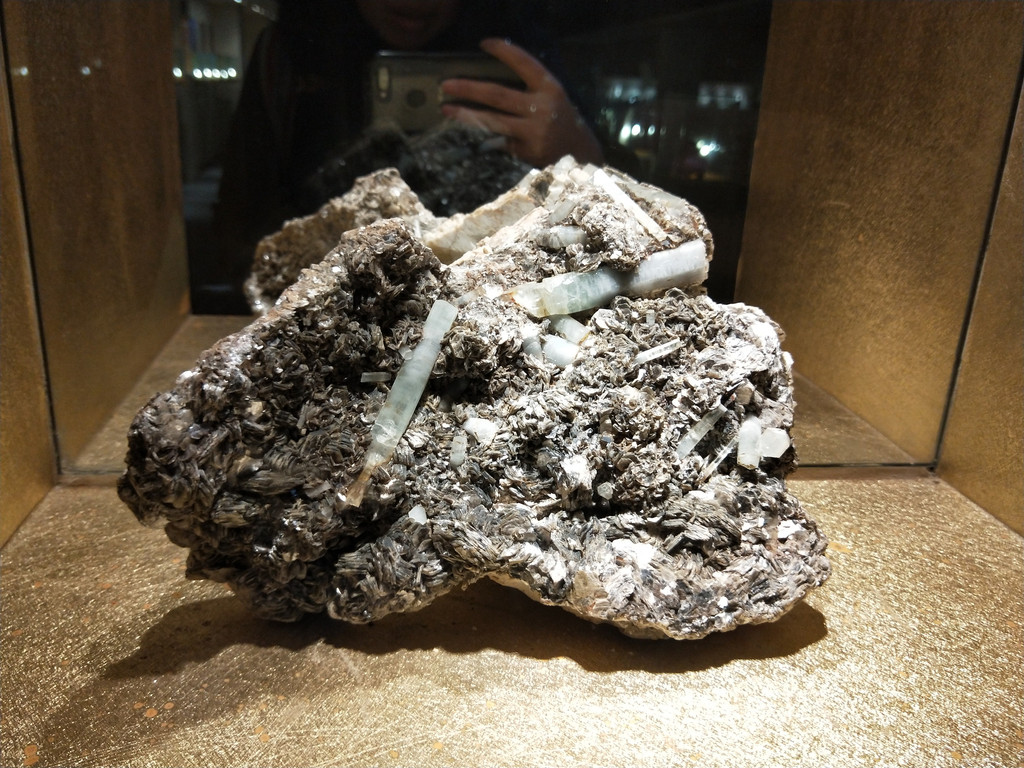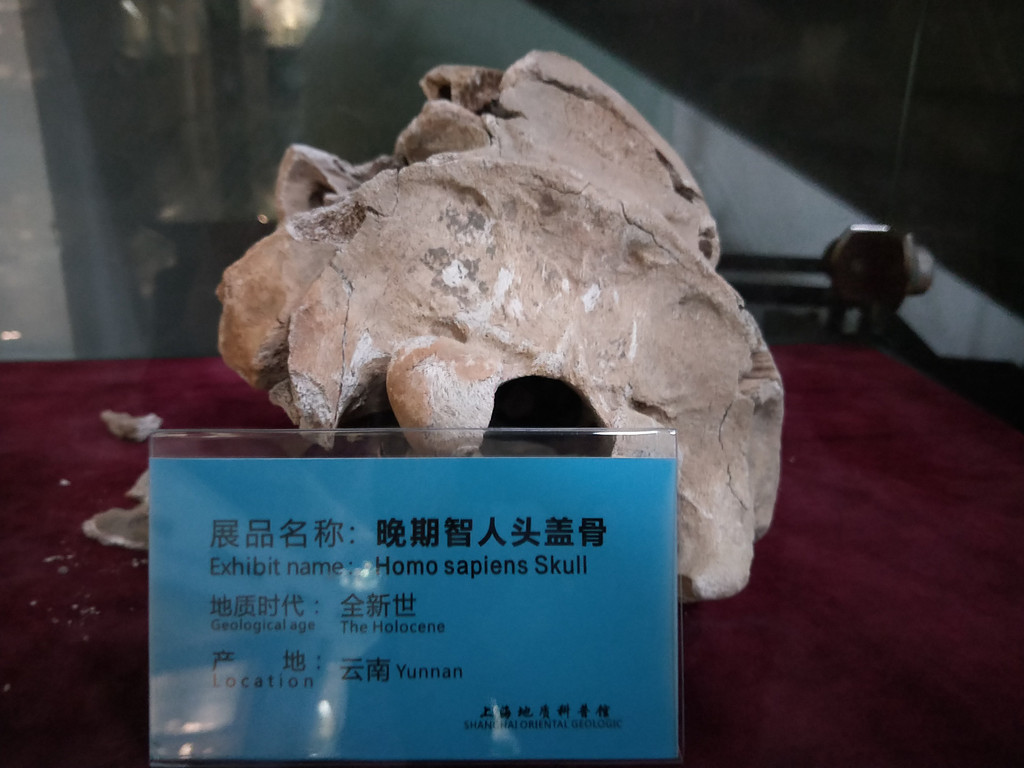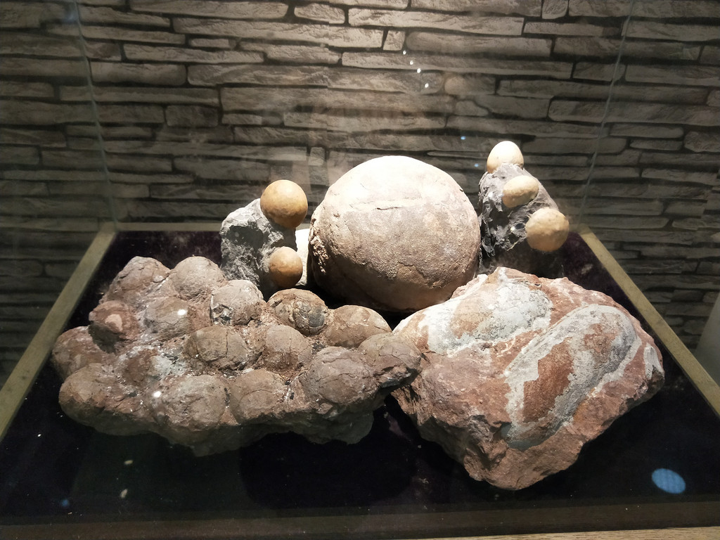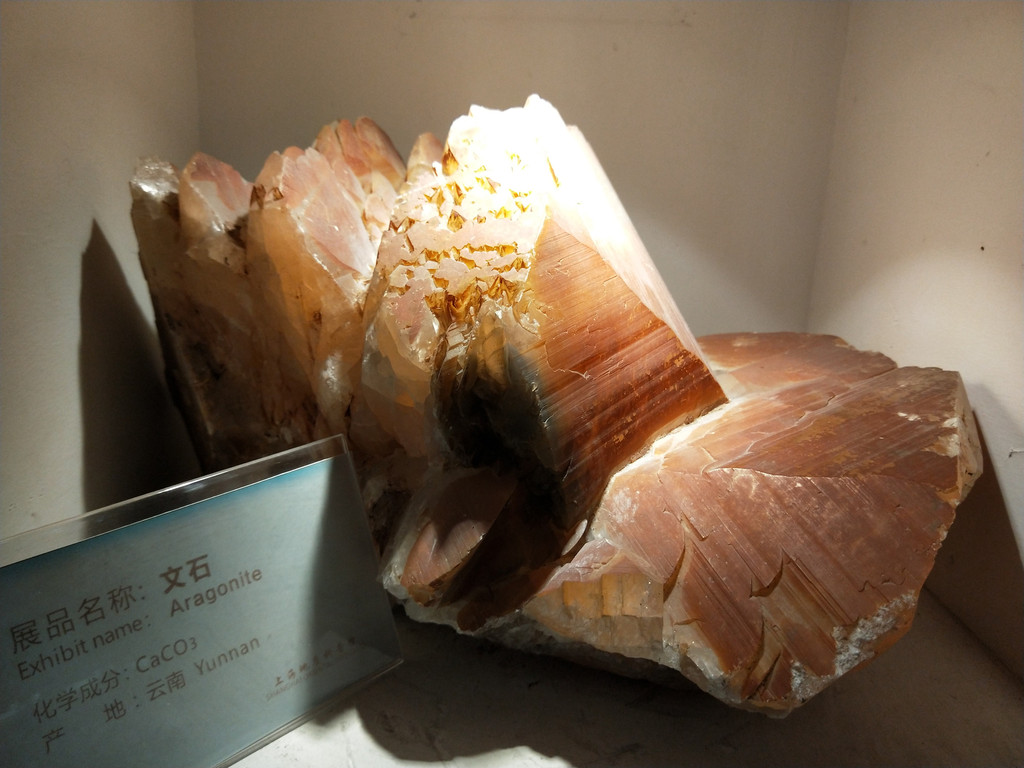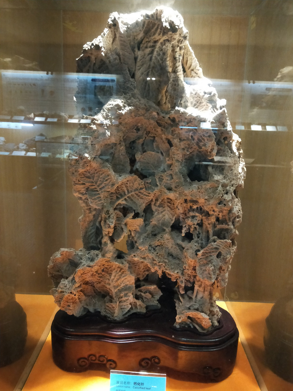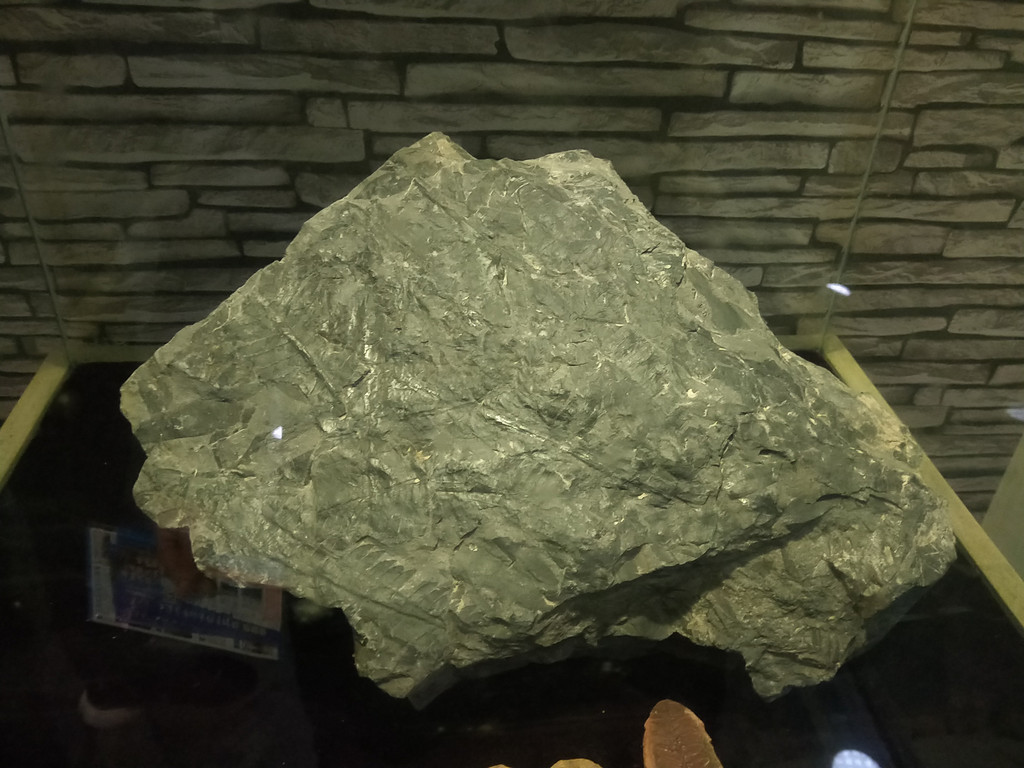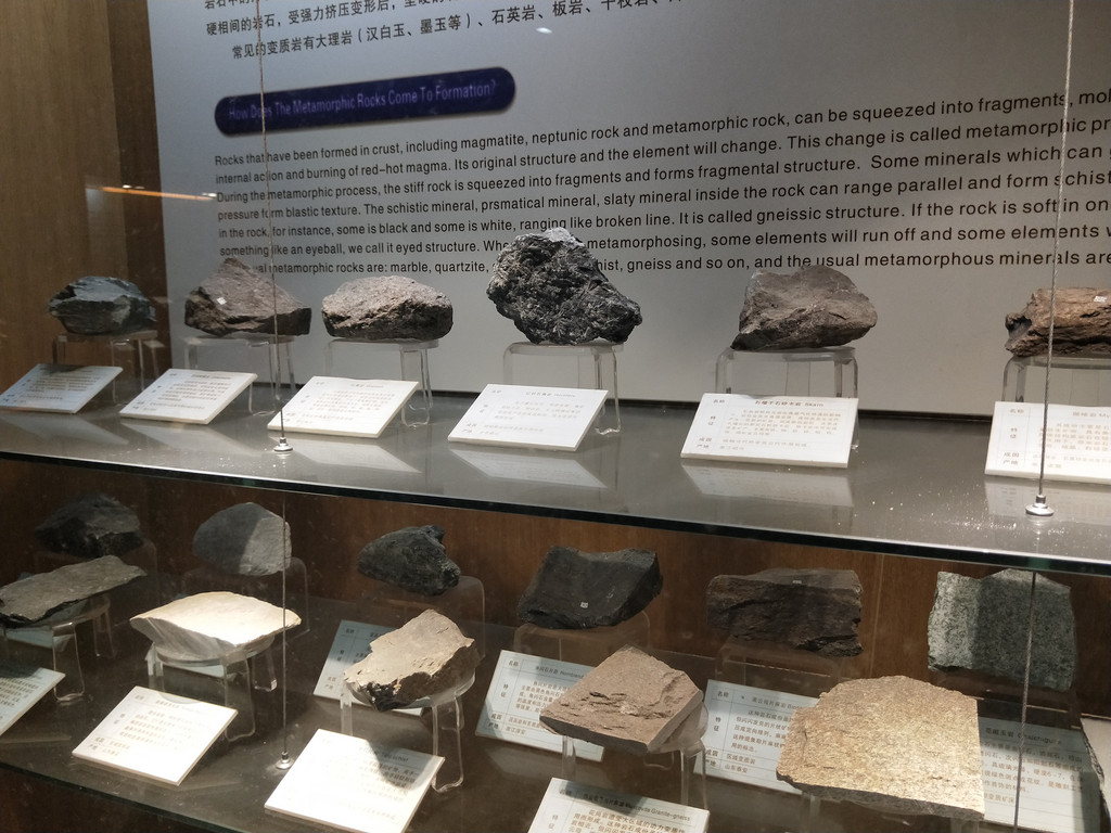 骨唇鱼生活在始新世,换算成时间距离的话,大约在距今约四千万年前,是真骨鱼次纲骨唇鱼属的一种鱼类,在分类上属于鲤鱼科,它的形状呈纺锤形,倒是确实有点像我们今天的鲤鱼的。化石在展柜里排列了五行五列,只有最后一行少了一条,加起来足足有二十九条骨唇鱼化石,以至于我以为这种鱼类的化石很普通,其实也是属于比较珍稀的一种化石,只不过东方地质科普馆的资源比较丰富而已。