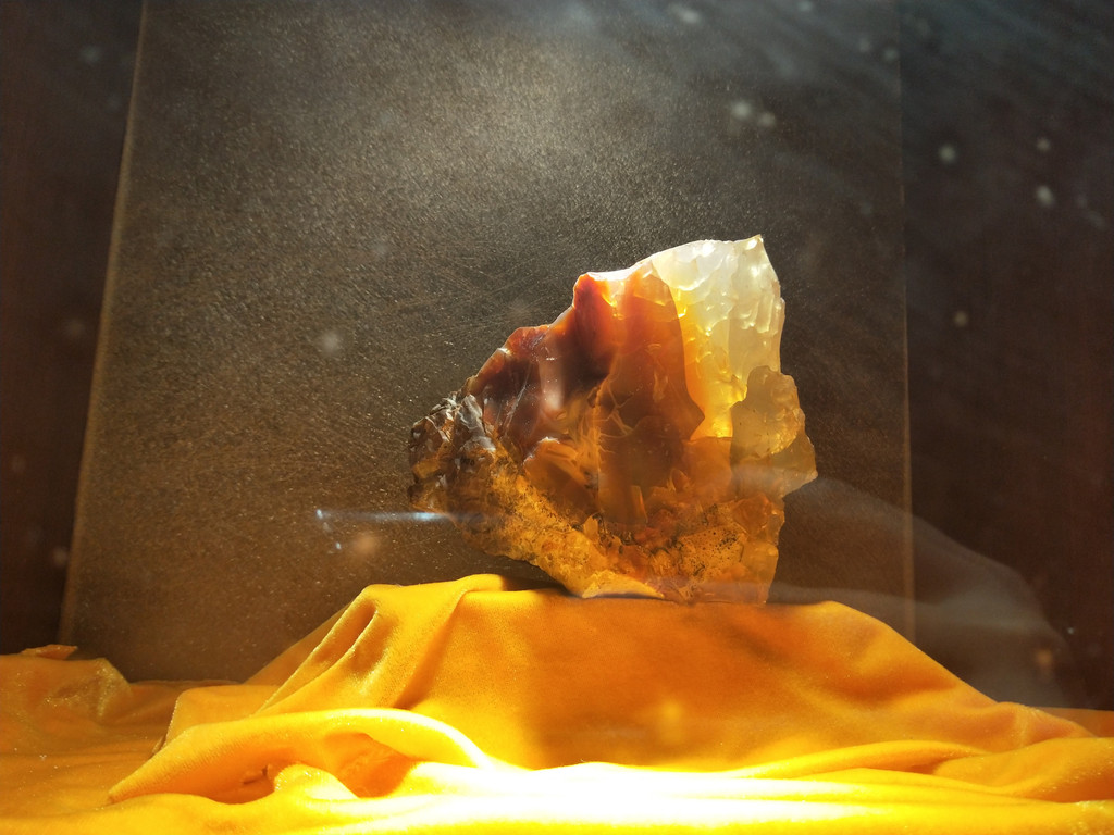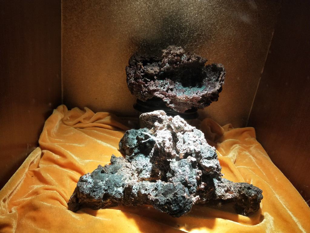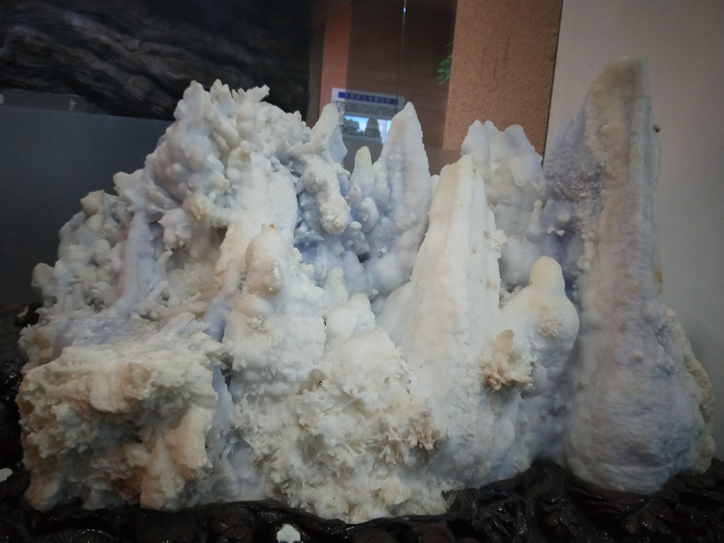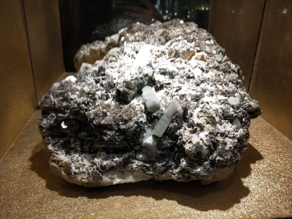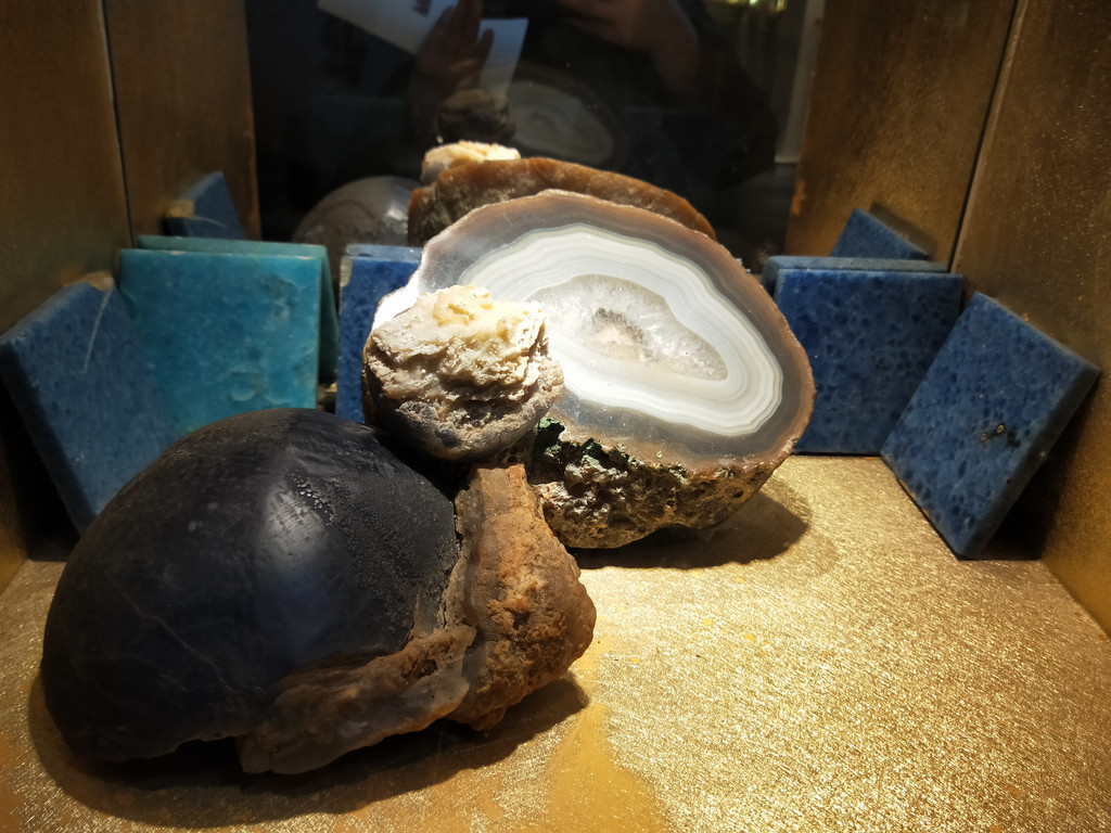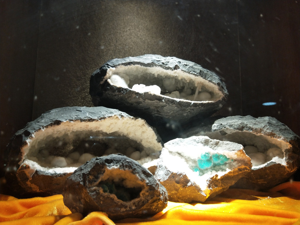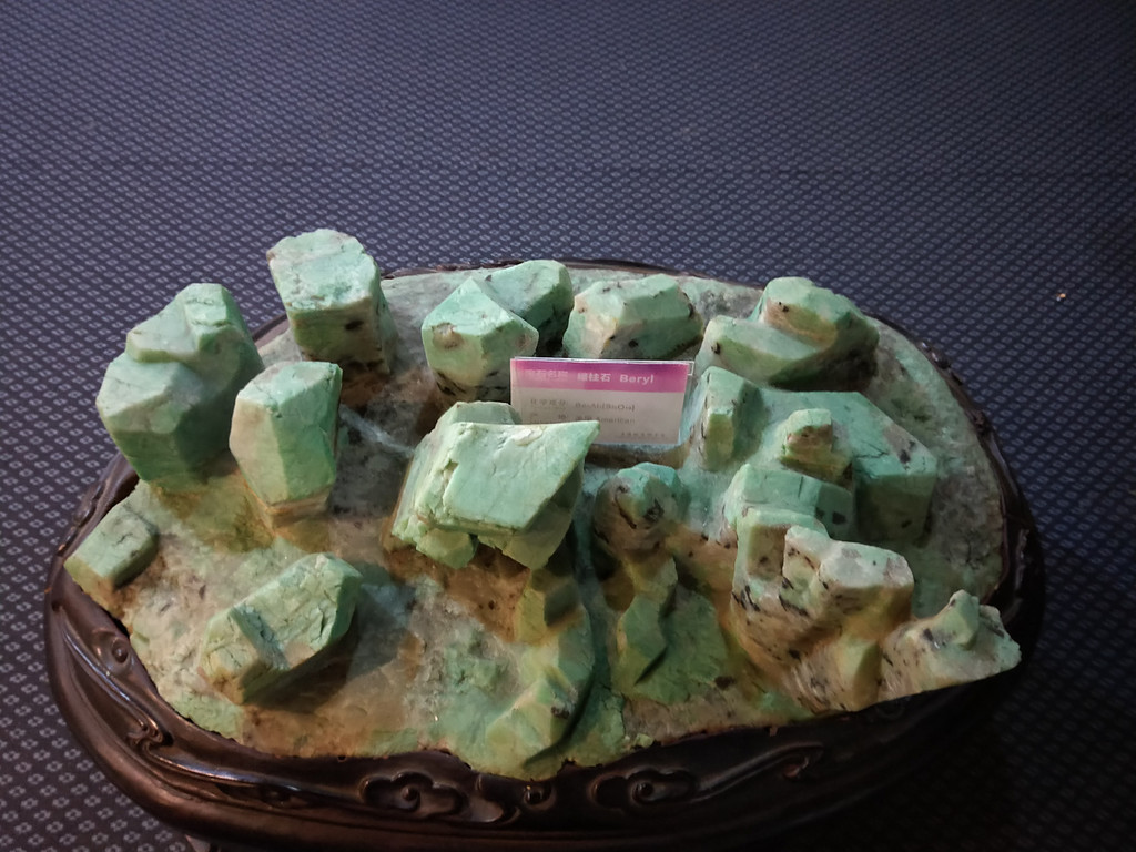 骨唇鱼生活在始新世,换算成时间距离的话,大约在距今约四千万年前,是真骨鱼次纲骨唇鱼属的一种鱼类,在分类上属于鲤鱼科,它的形状呈纺锤形,倒是确实有点像我们今天的鲤鱼的。化石在展柜里排列了五行五列,只有最后一行少了一条,加起来足足有二十九条骨唇鱼化石,以至于我以为这种鱼类的化石很普通,其实也是属于比较珍稀的一种化石,只不过东方地质科普馆的资源比较丰富而已。