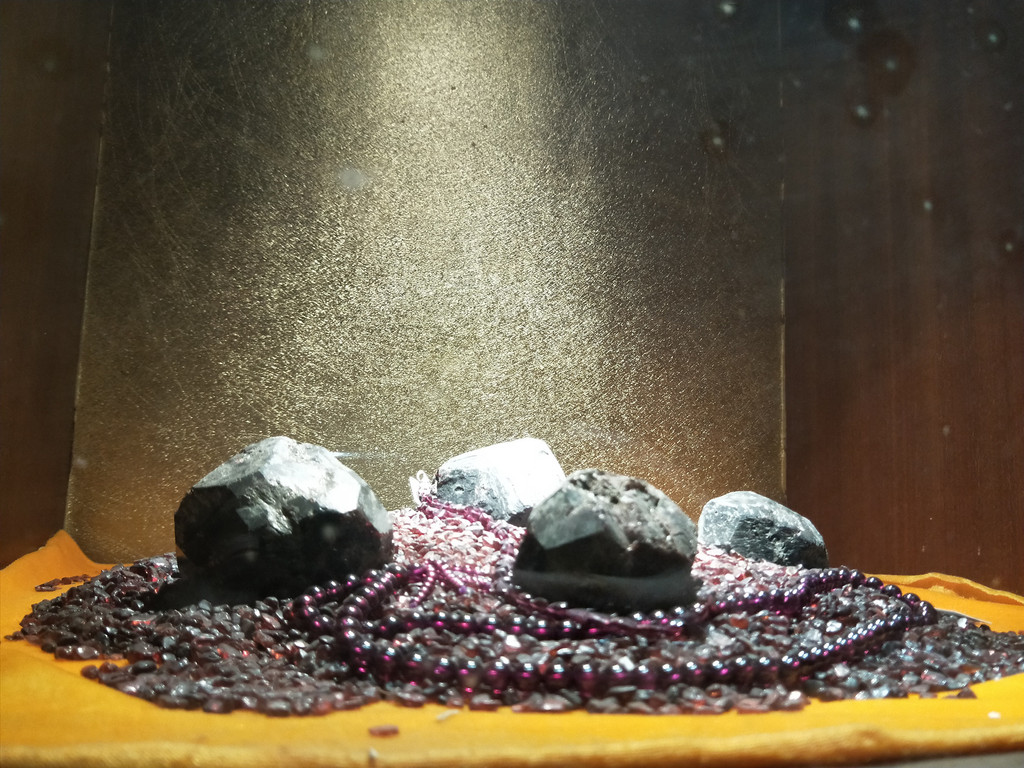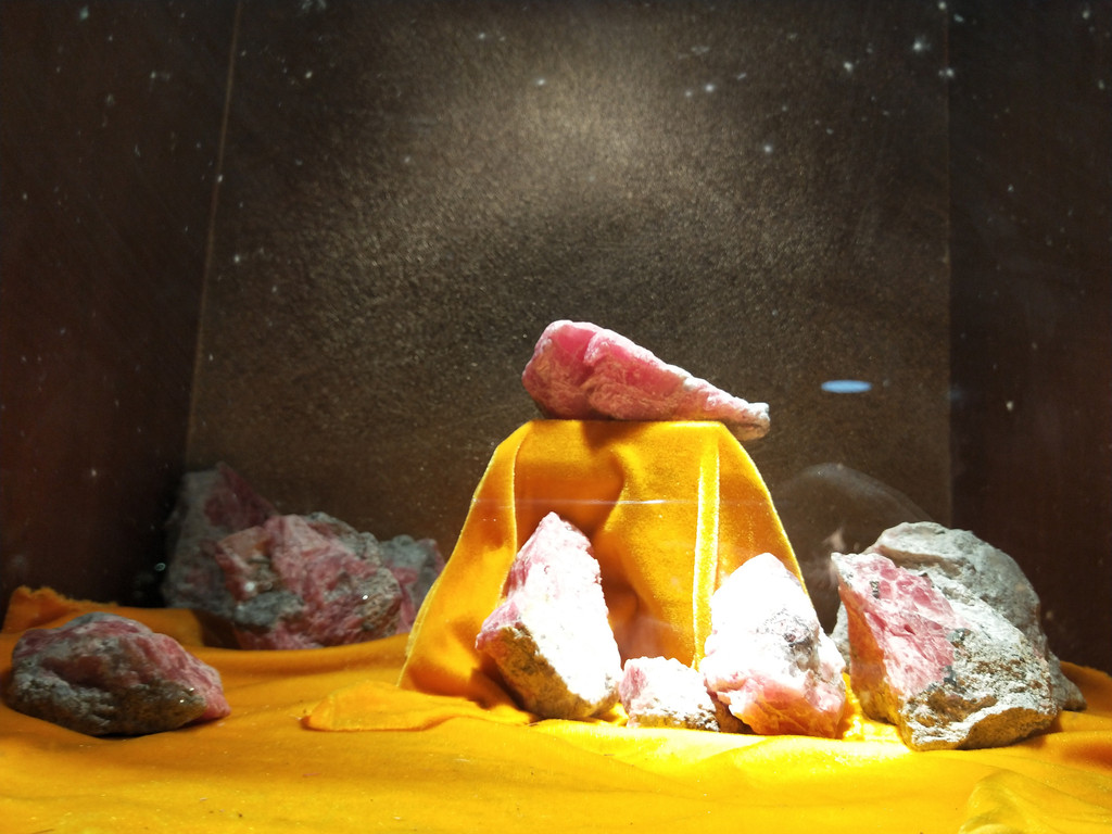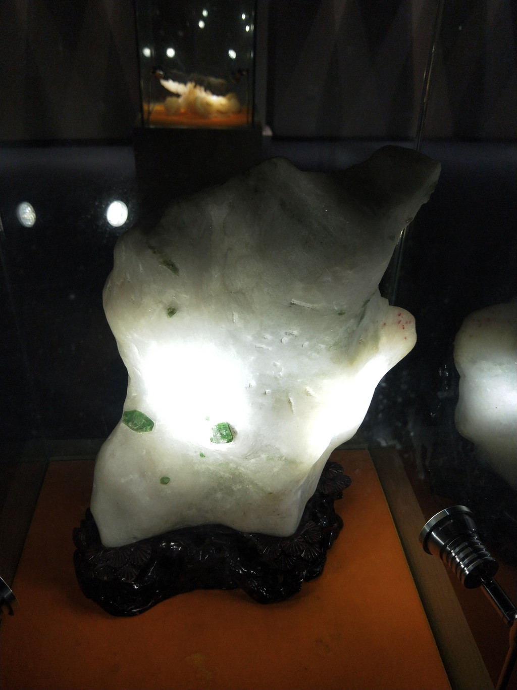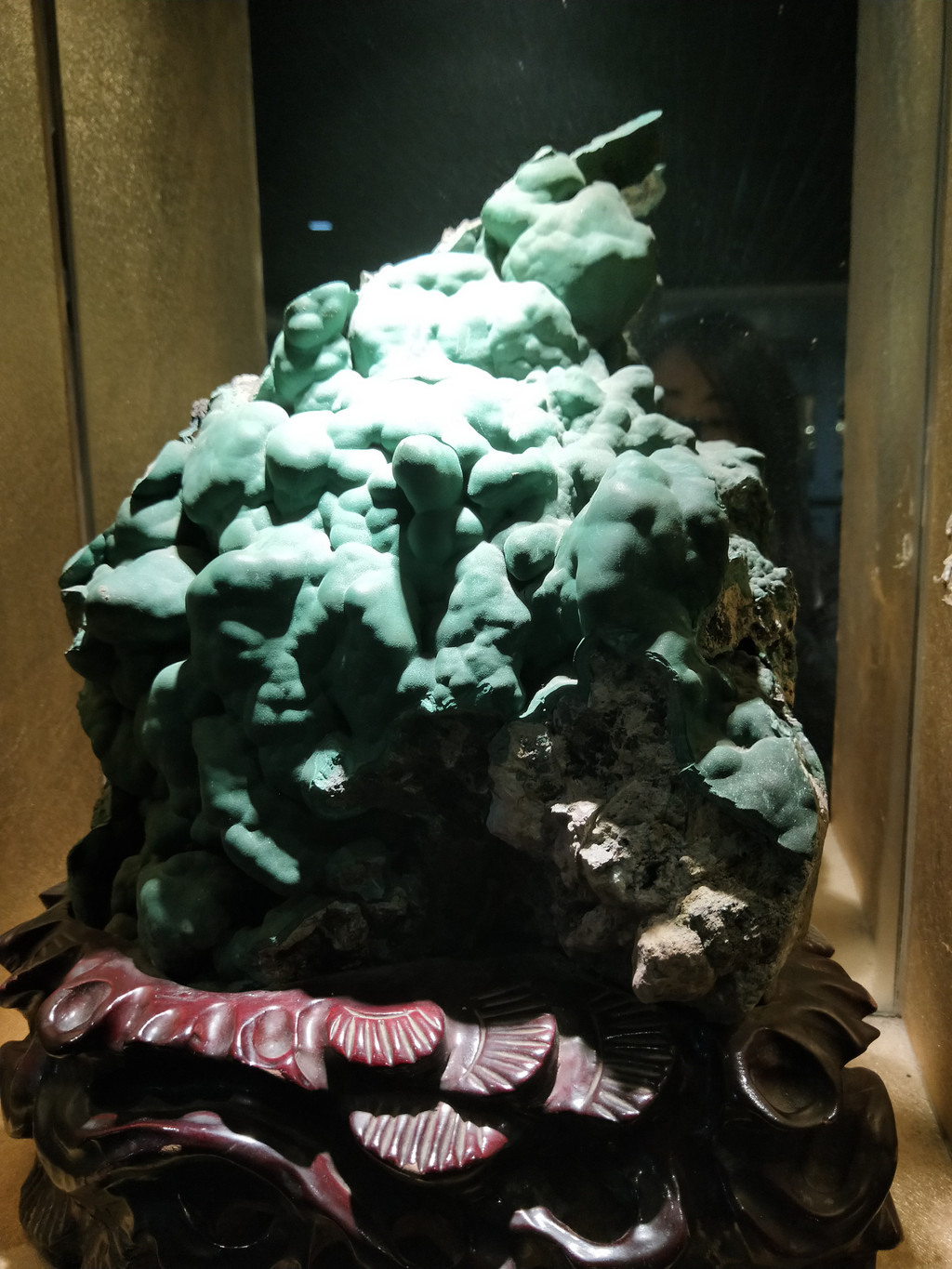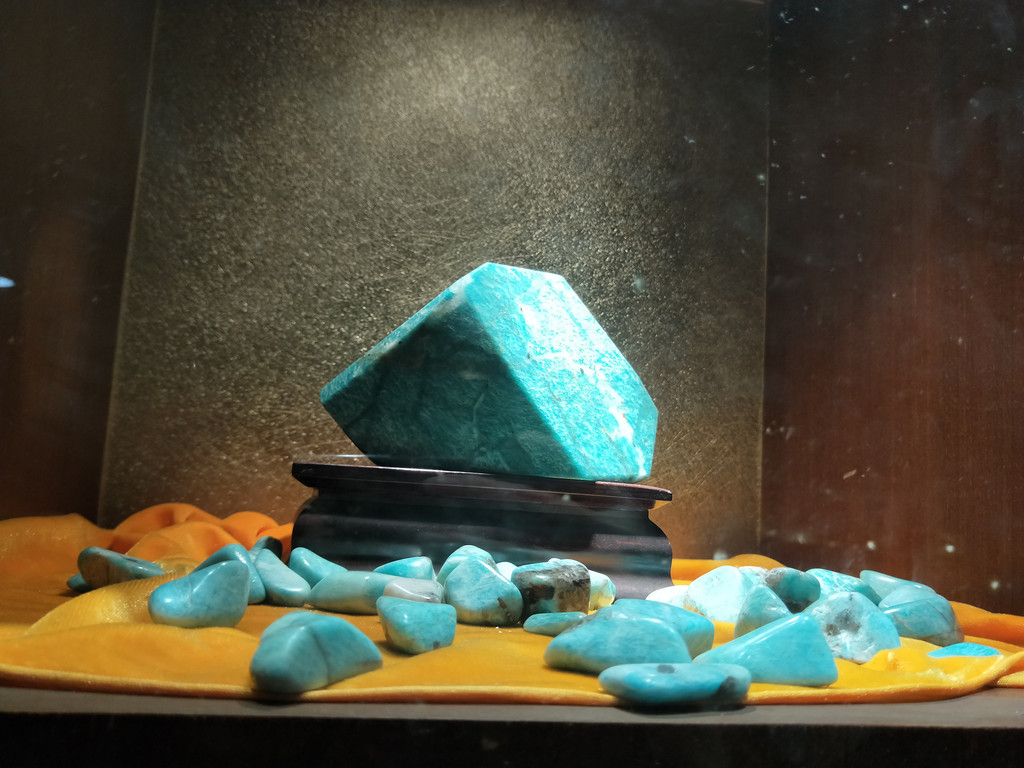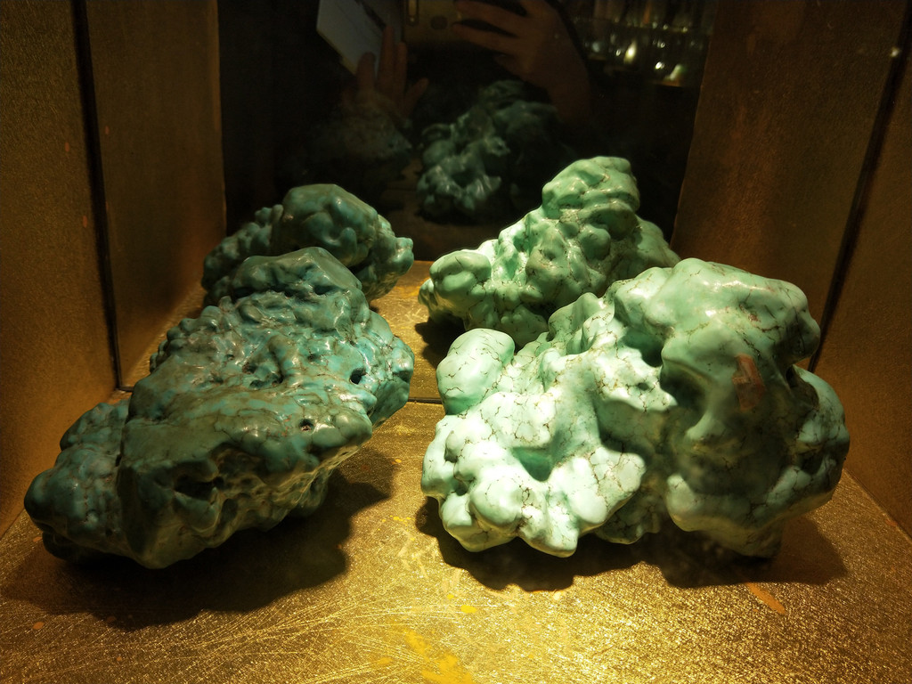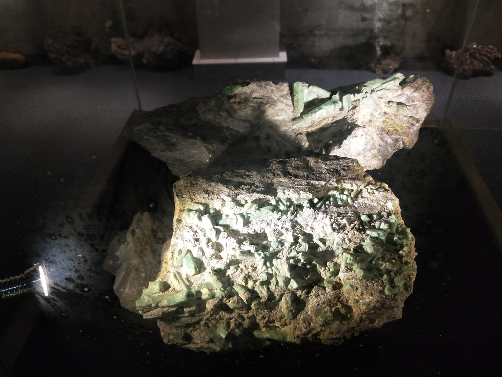 骨唇鱼生活在始新世,换算成时间距离的话,大约在距今约四千万年前,是真骨鱼次纲骨唇鱼属的一种鱼类,在分类上属于鲤鱼科,它的形状呈纺锤形,倒是确实有点像我们今天的鲤鱼的。化石在展柜里排列了五行五列,只有最后一行少了一条,加起来足足有二十九条骨唇鱼化石,以至于我以为这种鱼类的化石很普通,其实也是属于比较珍稀的一种化石,只不过东方地质科普馆的资源比较丰富而已。