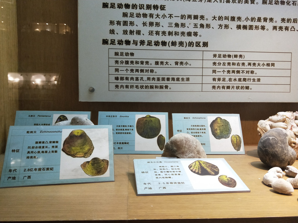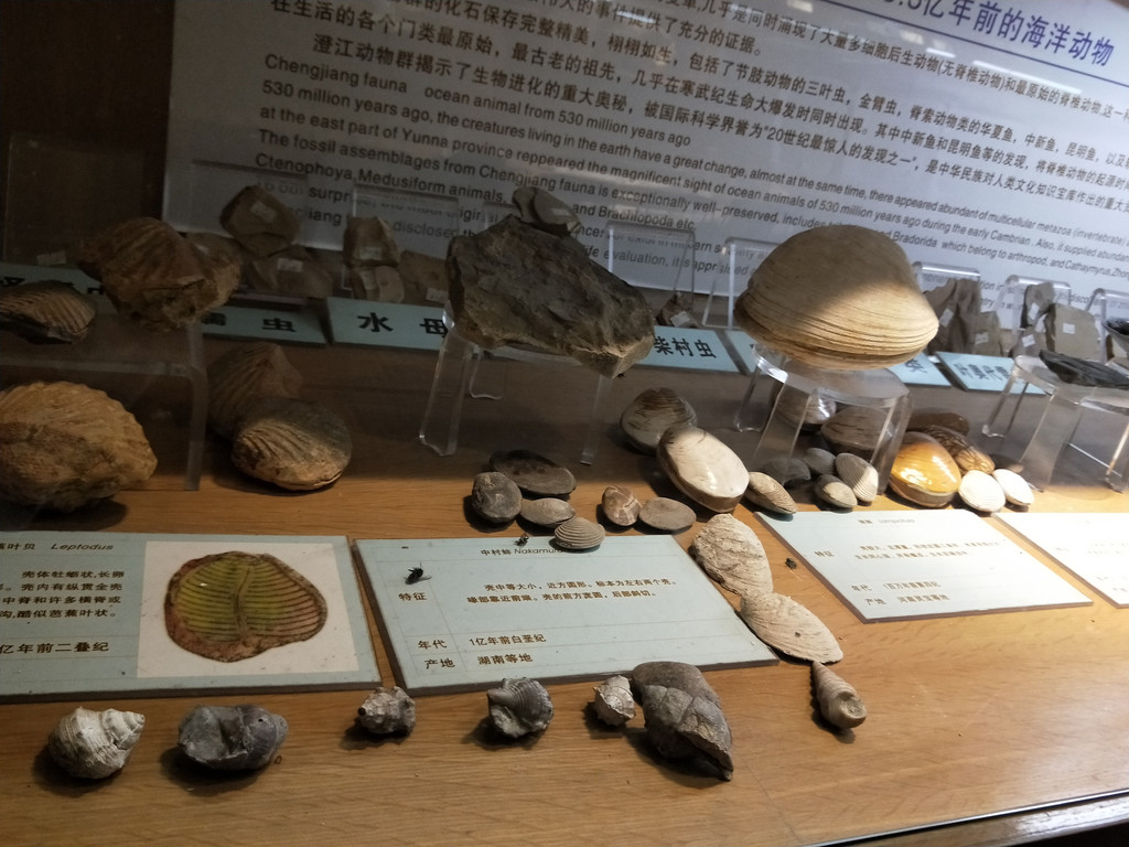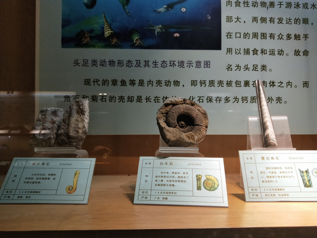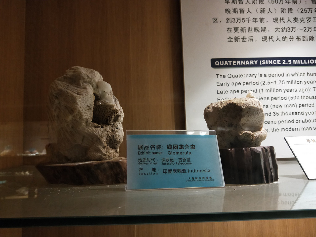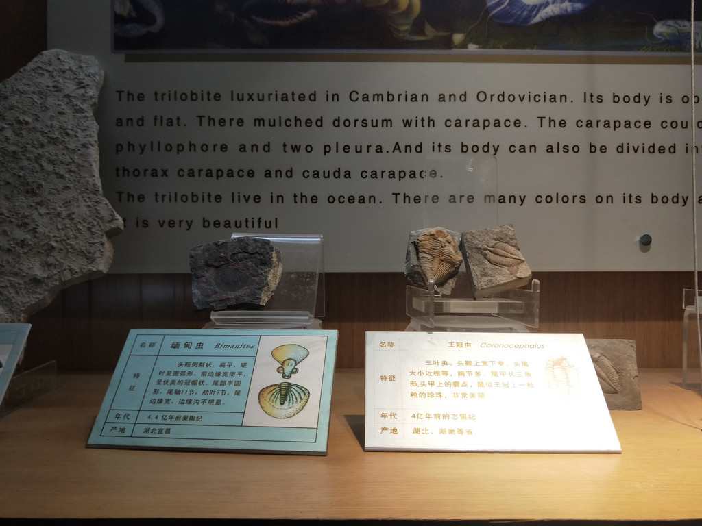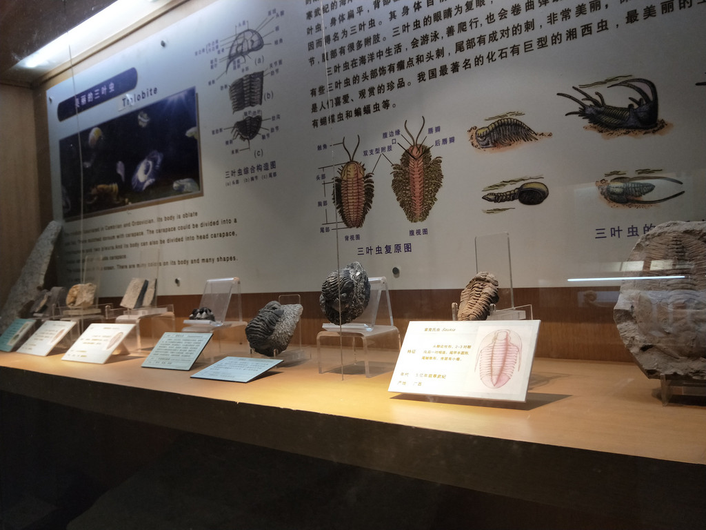 东方地质科普馆里不仅有大大小小的石头,还有大量的生物化石,有些是我们比较熟悉的动物,诸如三叶虫、菊石、海百合等等。还有更多的化石,是我们闻所未闻的生物遗留下来的。