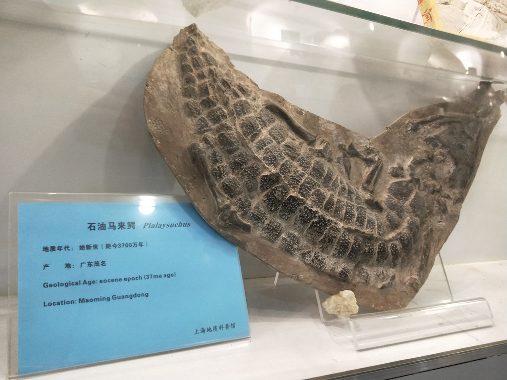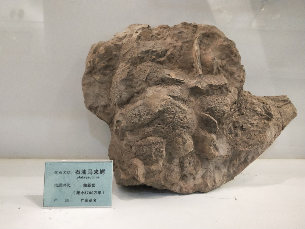 石油马来鳄生活在晚始新世,产自广东茂名的茂名系油柑窝层。它皮肤上的纹路,和今天的鳄鱼也很相似。