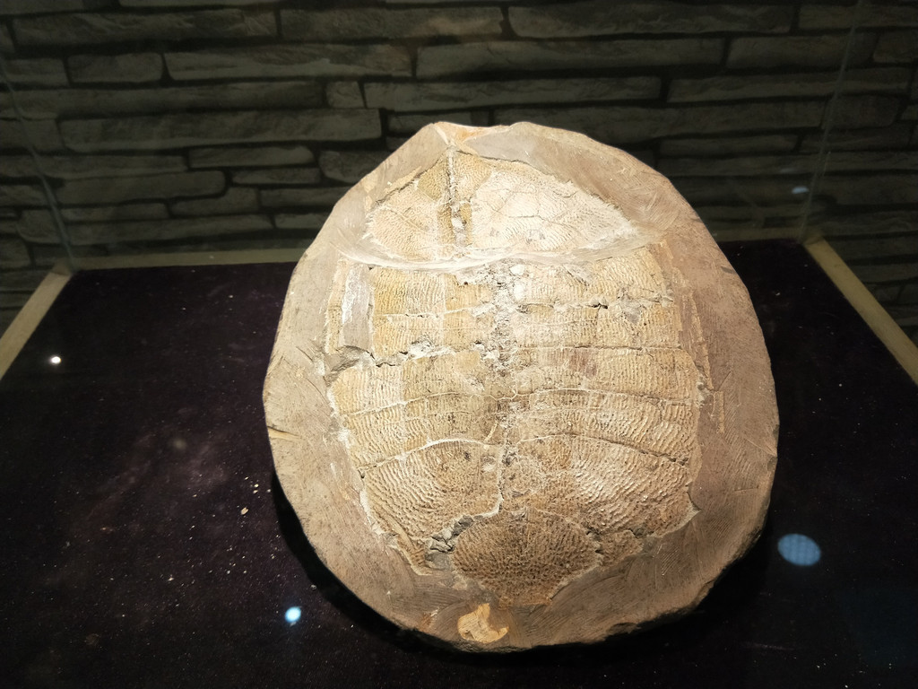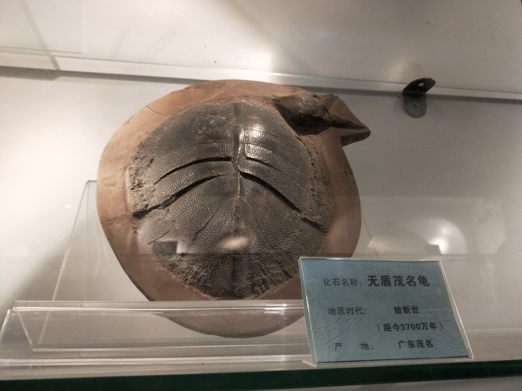 无盾茂名龟也是在茂名地区发现的,这种龟的体型就比较小了,生活在始新世的中晚期,龟甲中间的隆起比较高。