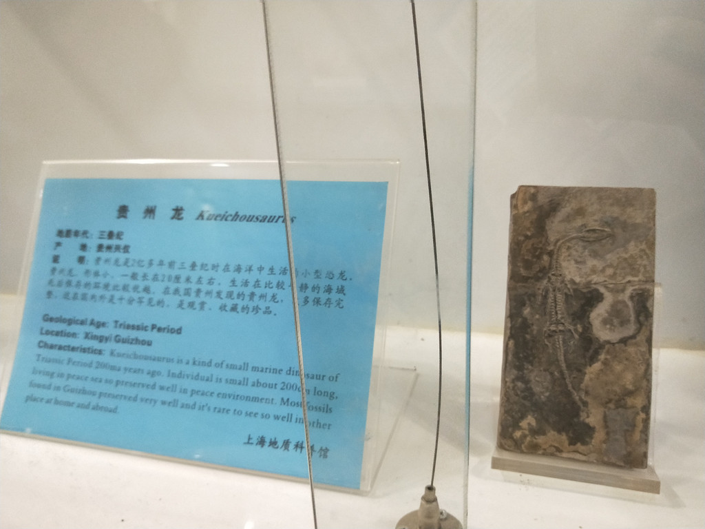 贵州龙是在贵州被发现的,它的形状和中国传说中的“龙”颇有几分相似,身形狭长,有四肢和尾巴,被发现的时候称为“四脚蛇”。这种龙不会飞天,是一种爬形动物。
