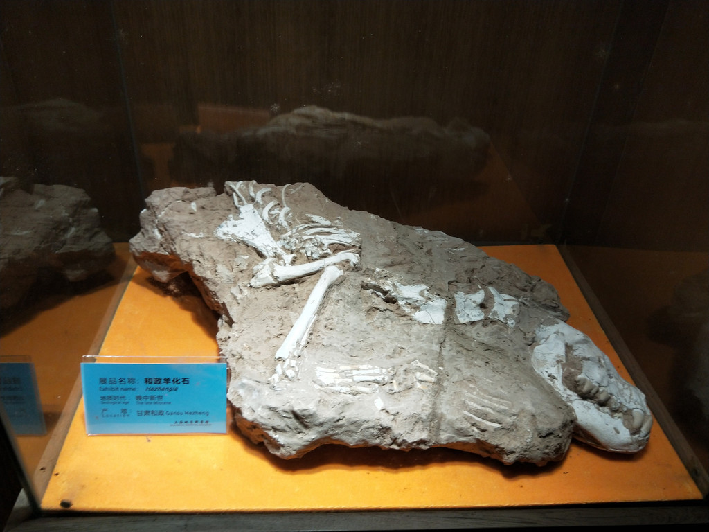 和政羊的化石并不完整,最清楚的是它的腿骨。这种动物是在甘肃和政地区发现的一种牛科动物,在个体大小和体态上与现在的羊很接近,不过头骨的构造、角的形态和颈部的特征却和麝牛更接近。麝牛现在仅在北美洲的阿拉斯加生存,和政羊的发现表明麝牛的起源地应该在亚洲,后来才通过白令陆桥迁徙到北美去的。