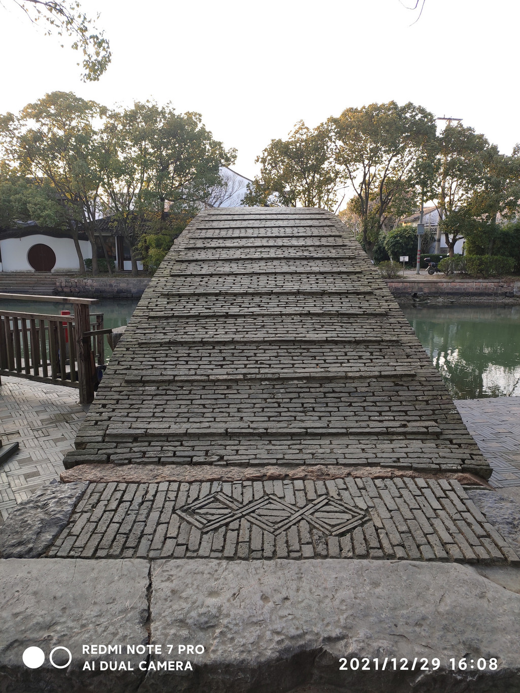 桥拱倒映碧水,虚实相接,恰成一圆形。