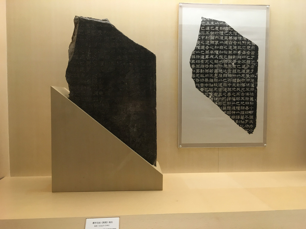 隶书萌芽于战国末年,行于秦汉,西汉时开始盛行。最能反映隶书艺术成就的是东汉碑刻。东汉的熹平石经残石(拓本)主要内容是《周易》中的名篇,正反共存四百三十字,文字清晰,点划分明,是现存残石中较大的一块了。据说这块石经由蔡邕书写,字体是隶书。完整的熹平石经原来有四十六块,不过现在已经只有残石了。