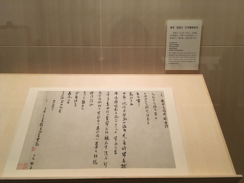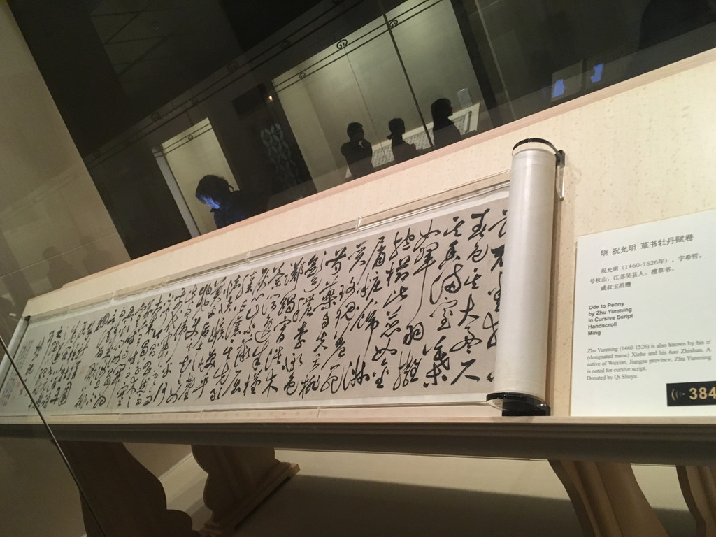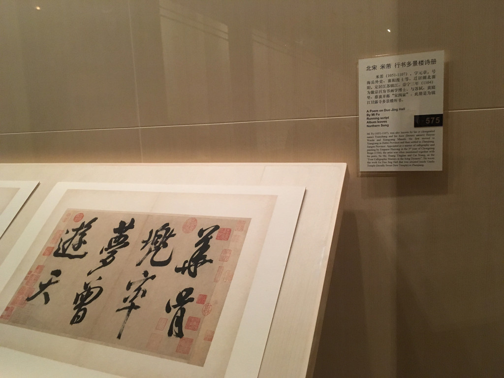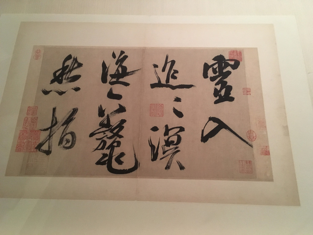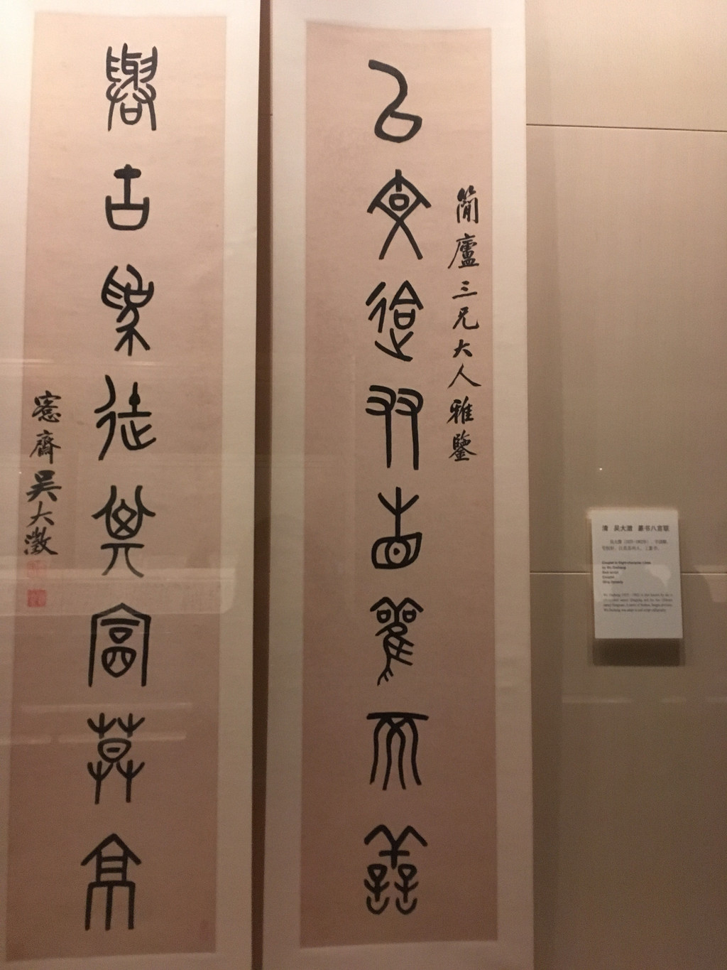 我们估摸了一下时间,就看了看王铎的行书竖轴,还有刘墉、黄士陵和吴大澂的书法作品,就前往下一个展厅去了。