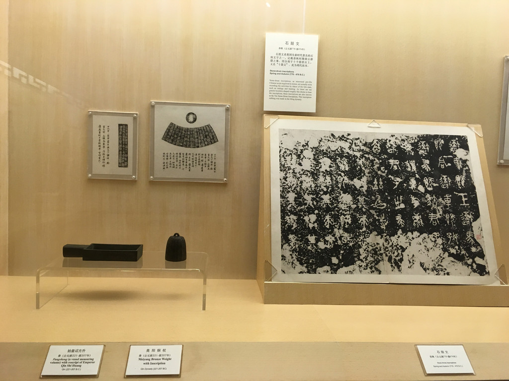 商代的甲文是迄今发现契刻在骨和甲上的最早文字,金文是铸造在青铜礼器上的文字,东周出现了写在竹简或木牍上的简书,刻在印章上的玺印文字、铸在刀币或布币上的刀布文字等。秦始皇一统天下后,一大功绩就是统一文字,也就是小篆。