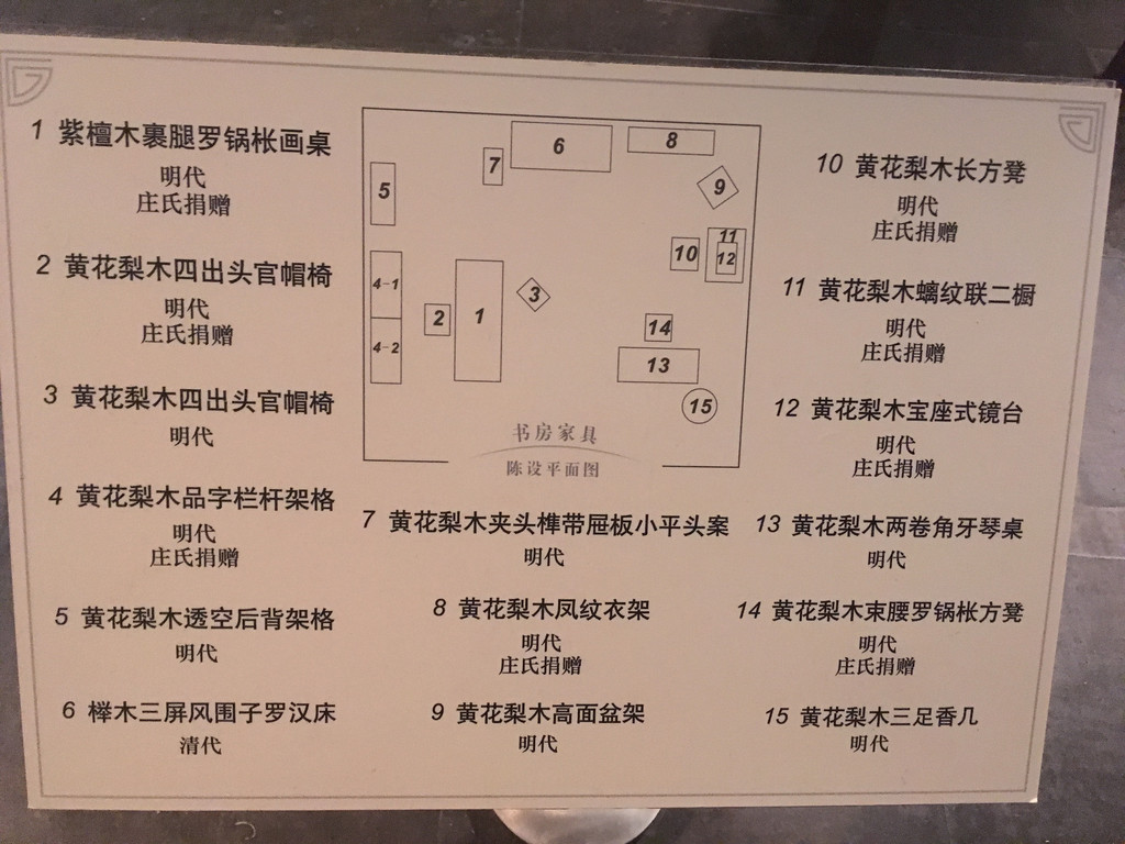 走进展厅就被震惊了一下,这里展示的是庄氏捐赠的明代黄花梨家具,大大小小足有十五件家具!