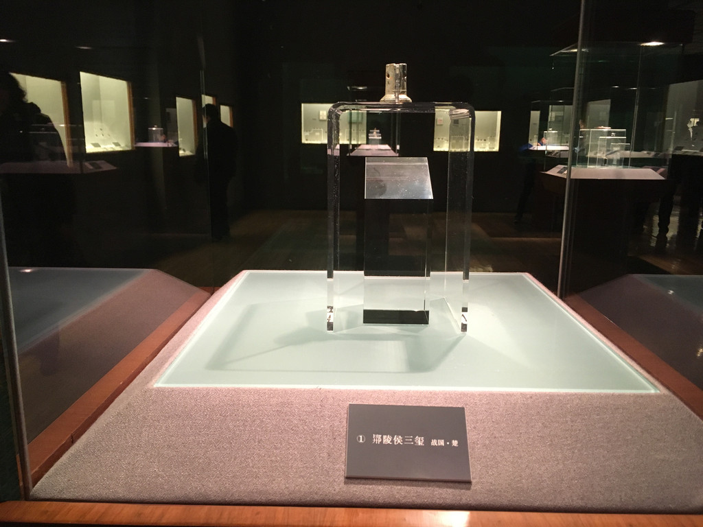 “沅陵侯三玺”铜质,柱钮,外观居然磨损得还不算太厉害,也可能是经过了文物的修复工序。这种玺是楚系玺印中特殊的形制,有两合、三合玺,意思是将合符与玺印由二人或三人分别执掌,三玺分开持有,需要合起来才算有效,这是古代的一种十分严密的凭信方式。目前三合玺部件倒是发现了不少,但大多无法拼合完整,目前要说完整的三合玺,仅有两件。