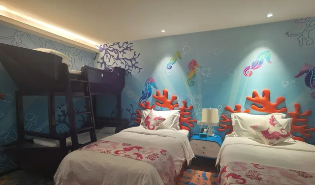 这次住到了很合喵妈少女心的美人鱼主题家庭房!哈哈~是不是粉粉蓝蓝,很嗲?