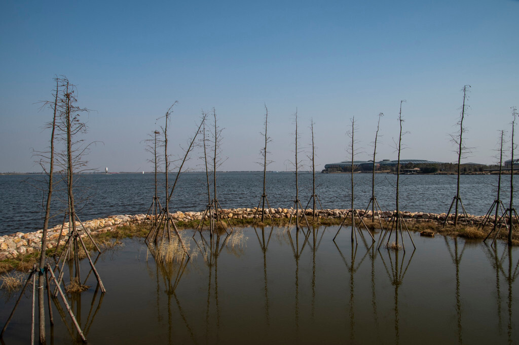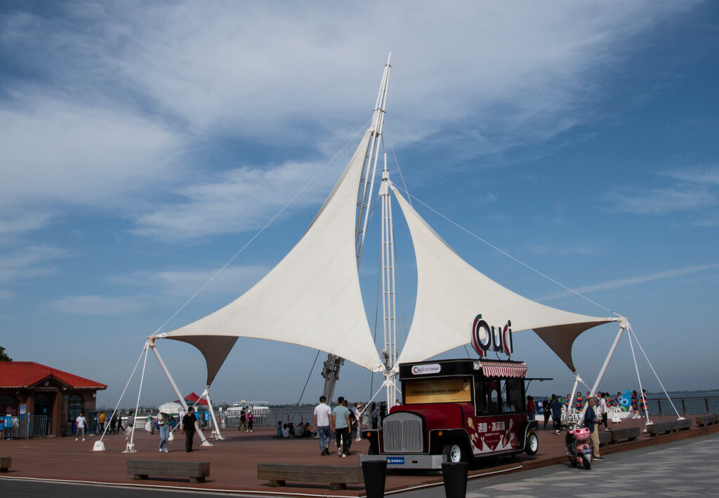 上海临港滴水湖又名芦潮湖,位于上海市浦东新区南汇新城,处于杭州湾与长江河口交汇处的东海之滨,距离上海市中心约76公里,是南汇新城的中心湖泊。