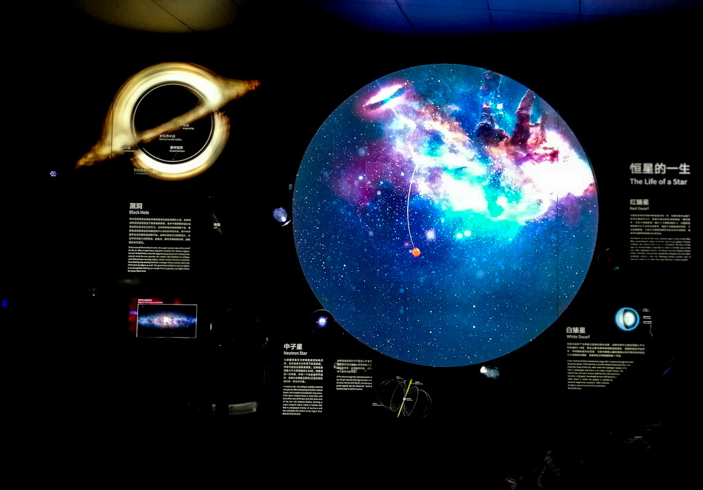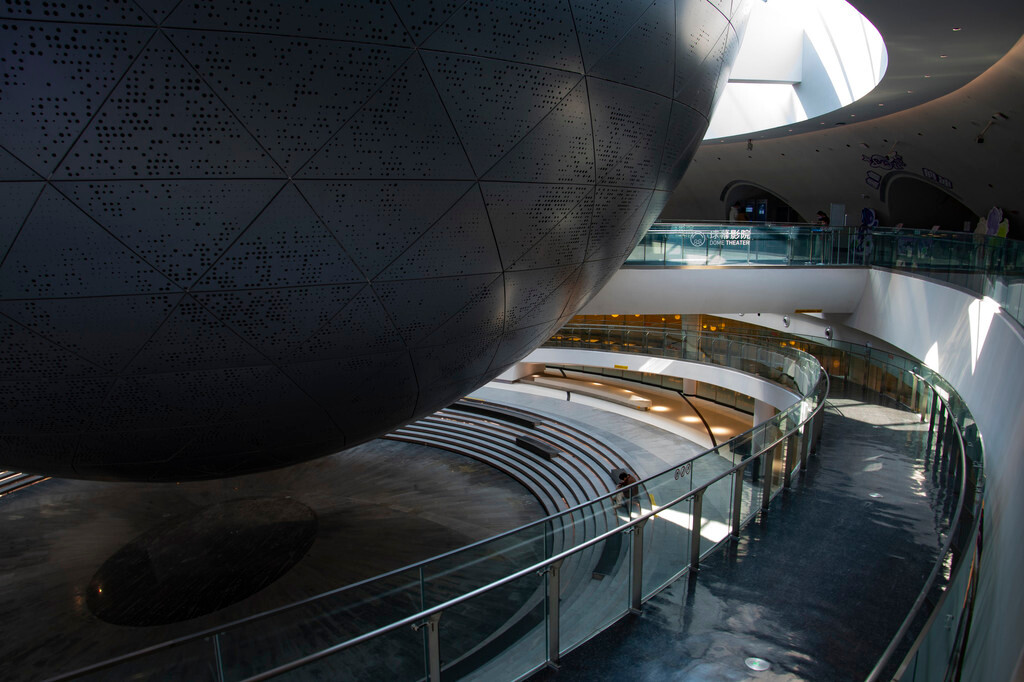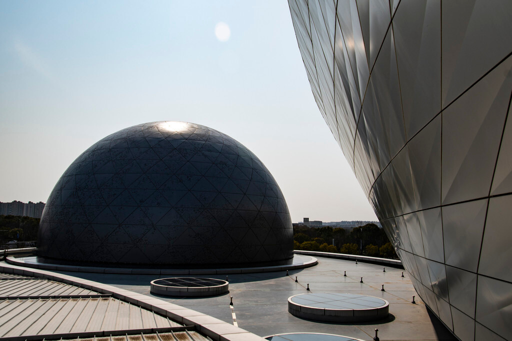 上海天文馆,位于上海市浦东新区临港新片区滴水湖畔,是上海市政府投资兴建的集教育、研究、收藏、展示、交互功能为一体的科普基础设施,为世界规模最大的天文馆。上海天文馆占地面积58603平方米,建筑面积37741平方米。全馆以“连接人和宇宙”为展示主题,设置“家园”“宇宙”“征程”三大主题展区、“中华问天”“好奇星球”“航向火星”三个特色展区及教育活动区。馆内藏有约70件陨石样本与超过120件/套文物藏品,配有四大专业级天文观测及天象演示设备,共计展品300余件。