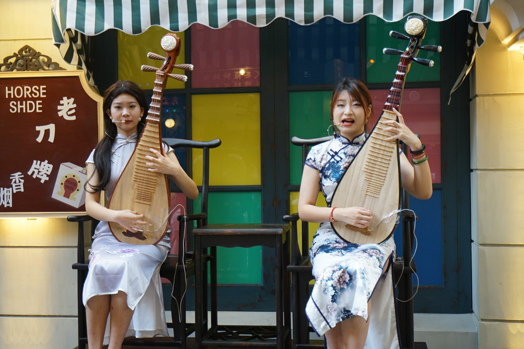 除了演出之外,上海千古情景区还有穿越街、千古情街、光影秀等网红打卡点,和闺蜜一起来的话还能去摩登换装馆换一身旗袍打卡拍照,看到很多美女都穿着旗袍拍照,太有三十年代老上海的感觉了~