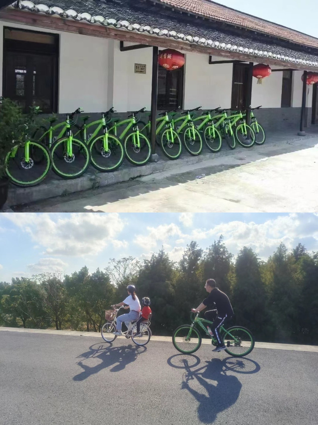 骑行装备:荧光绿山地车、头盔、线路图,样样齐全,让你骑行更从容。成人、儿童、双人自行车应有尽有,满足你的团队需求。